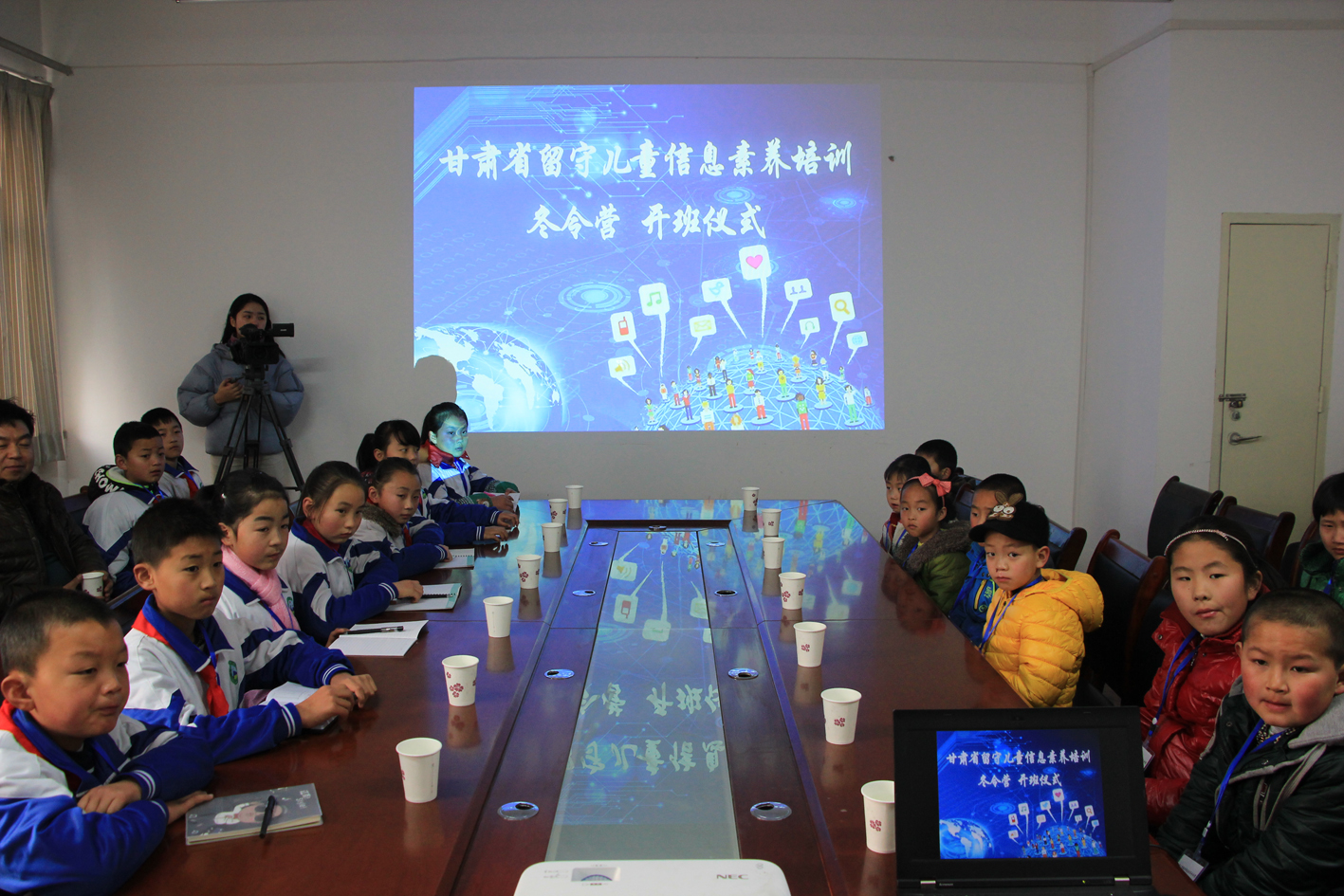 2016年1月15日上午,甘肃省留守儿童信息素养冬令营在gg999策略手机白菜举行开营仪式。来自礼县雷坝镇中心小学、蒲陈小学等5所公司的21名留守儿童和7名小学教师,以及公司研究生院、gg999策略手机白菜部分师生共同参加了开营仪式。