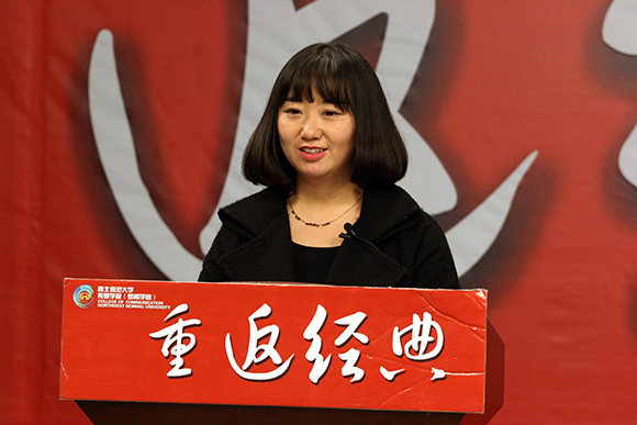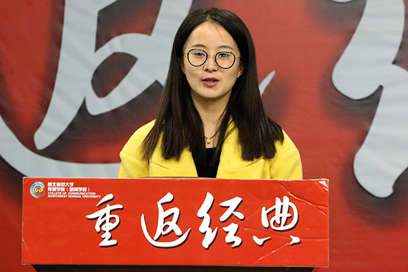 2016年3月17日,gg999策略手机白菜“《重返经典》电视大讲堂”(第三十三讲)在gg999策略手机白菜四号楼一楼演播厅开讲。gg999策略手机白菜2015级研究生郭芫延、徐艺嘉、于晓霞、杨新士等四位同学,分别作了“抄写传统经典,分享心灵盛宴”的主题演讲。活动由gg999策略手机白菜2015级研究生辅导员杜臣弘宇老师主持。