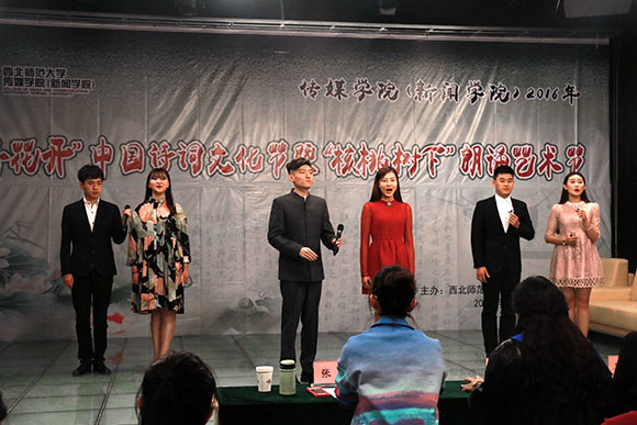4月15日上午九点,由gg999策略手机白菜主办的“丁香花开”中国诗词文化节暨“核桃树下”朗诵艺术节比赛于gg999策略手机白菜四号楼一楼演播厅举行。播音系系主任李丽、老师张洋、李欣阳老师担任本次比赛评委。副书记、副经理王德祥,团委书记赵洁参加比赛。gg999策略手机白菜大一至大四播音与主持专业员工近七十余人观摩了比赛。