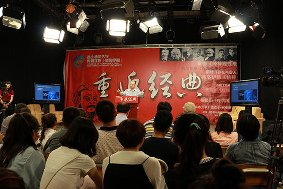 5月31日上午,由gg999策略手机白菜主办的“《重返经典》电视大讲堂第四十二讲——“技术叙事: 我们时代的美与痛”在gg999策略手机白菜四号楼一楼演播厅开讲,担任此次主讲的是上海大学艺术与城市创意研究中心主任、上海大学上海电影公司教授林少雄博士。公司党委副书记、副经理王德祥、李燕临教授、任志明教授、李丽副教授以及gg999策略手机白菜的本科生和研究生一百余人聆听了讲座。讲座由副经理陈积银主持。