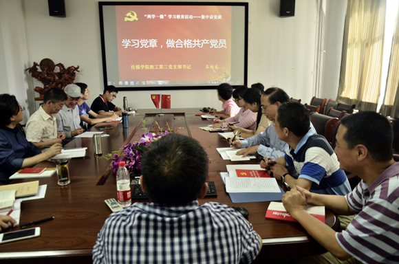 教工三个党支部由第一党支部书记、新闻系主任石培龙副教授担任主讲,石培龙老师回顾了党章的发展历程,阐述通过学习党章,要进一步增强政治意识、大局意识、核心意识、看齐意识,进一步将推动党的组织生活和党员教育管理严起来、实起来,激发广大共产党员的责任感使命感紧迫感。通过做合格党员,切实发挥党员的先锋模范作用,带动全院师生员工坚定信心、振奋精神、真抓实干。