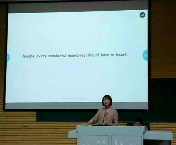 2014级广播电视编导二班员工孟星汝将活动所有的人员与纪录片一一介绍。友谊,热忱,成长被作为报告的关键词,教会在座的各位一步步脚踏实地的含义。