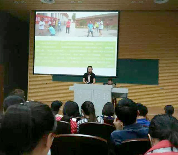 报告会首先用视频播放的形式展现广角镜社会实践小分队在定西西巩驿的支教活动。现场的每一位同学无不被孩子的童真和支教老师的认真教学所感染。欢笑声掌声一直回荡。