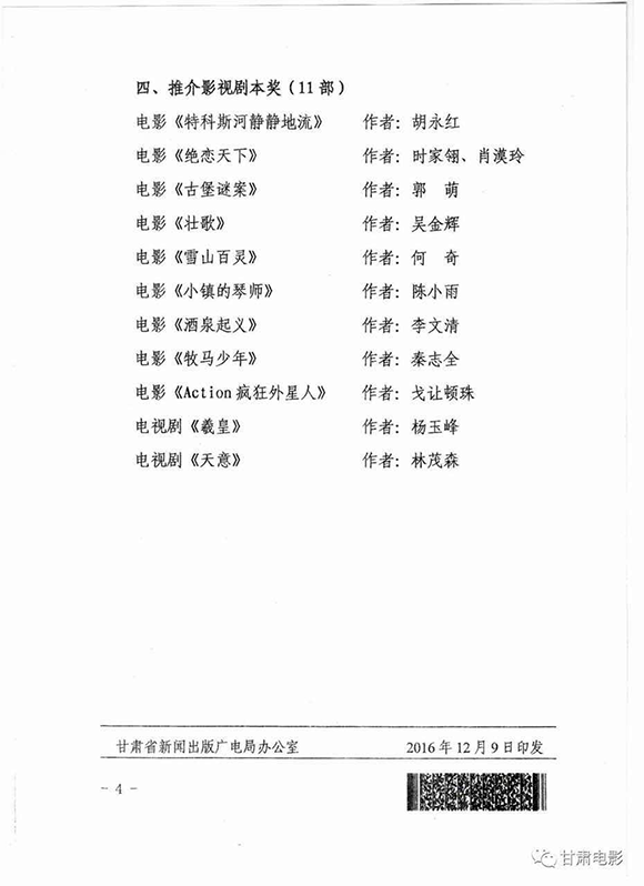 2016年12月9日,甘肃省新闻出版广电局表彰奖励2016年优秀西部影视剧本,传媒学子杨晗悦《迷失悬泉》获得优秀影视剧本奖。