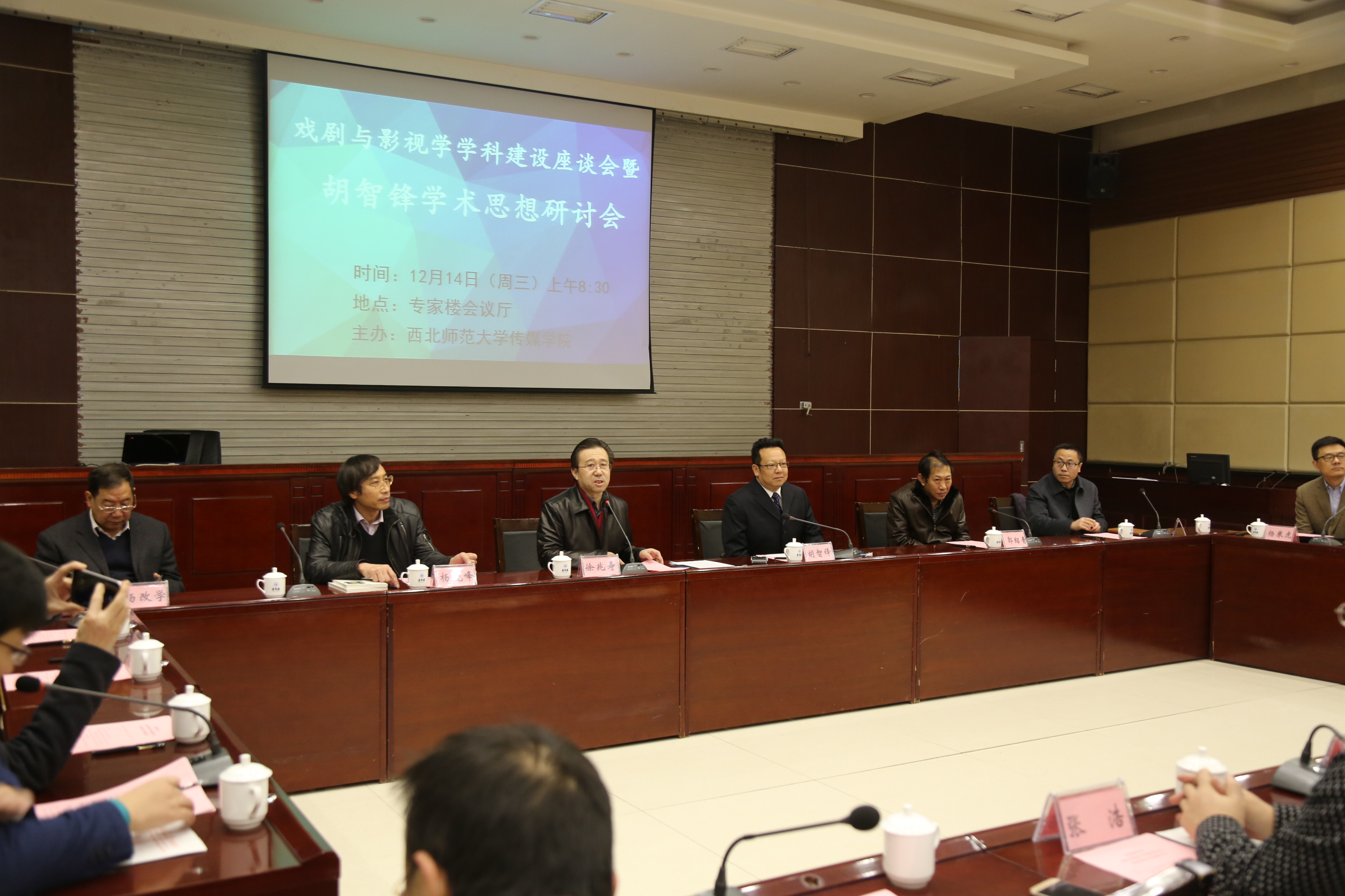 12月14日上午,由gg999策略手机白菜主办的“戏剧与影视学团队建设座谈会”在专家楼会议厅举行。国务院学位委员会学科评议组“戏剧与影视学”召集人、教育部“长江学者”、中国传媒大学《现代传播》主编胡智峰,中国传媒大学“白杨学者”、研究员、博士生导师、传媒艺术与文化研究中心执行主任杨乘虎,“戏剧与影视学”学科调研组秘书、中国传媒大学文科科研处副研究员邓文卿应邀参加座谈会,兰州文理公司gg999策略手机白菜经理、教授、博士生导师杨改学,gg999策略手机白菜教育技术公司经理、教授、博士生导师、《电化教育研究》主编郭绍青,兰州大学新闻与传播公司副经理、教授陈新民,兰州财经大学商务gg999策略手机白菜经理、教授杨晓峰等出席此次座谈会。公司经理徐兆寿、副经理杨华、副经理陈积银及师生100余人参加会议。