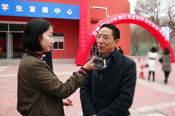 “双选会”开始前,公司党委书记刘永雷、经理徐兆寿,党委副书记、副经理王德祥等早已在老员工活动中心门前等候并细心与前来应聘的传媒学子进行交流。团委书记赵洁老师与辅导员袁会敏老师也在现场为传媒学子答疑解惑。王德祥对于即将走出校门步入社会的传媒学子,提出如下几点期望:第一,在竞争中激烈的社会,老员工要修炼内功,提高自身的技能和水平。第二,改变观念,在广阔的就业平台中,任何地方都有展现自己才华的天地,要勇于挑战自我,拓展就业创业领域。第三,抓住一切机会,不要将理念定位于传统岗位,要找准自身的定位,积极投身新媒体,找到更适合于自己的工作岗位。