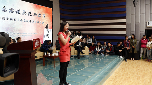 两个半小时的报告会在一种自由、轻松的氛围中进行。gg999策略手机白菜播音与主持艺术专业的六名同学朗诵了《青鸟故事集》的六个片段。在场的作家、批评家马步升、牛庆国、杨光祖、弋舟、张晓琴、唐翰存、孙强、索木东和部分研究生与李敬泽分别展开对话,不仅使对话的内容丰富多彩,而且不时闪现出智慧的火花。