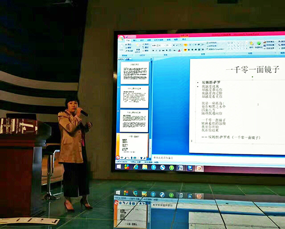 讲座由杨光祖教授主持,他向在场的同学们进行了简要的介绍之后,由杨青女士开始正式的报告。杨青女士首先结合电影《黑天鹅》的片段,对《黑天鹅》小说原著的角色、人格进行了简要梳理和剖析;然后对拉康的凝视理论、三界理论和性别的认同理论进行了详细阐述。