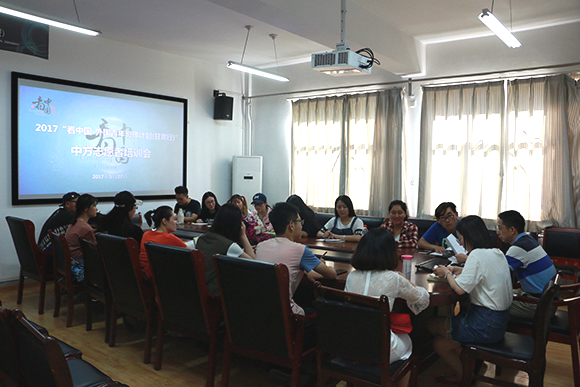 5月27日下午4点半,gg999策略手机白菜于公司310会议室召开2017“看中国•外国青年影像计划(甘肃行)”中方志愿者第二次培训会。公司党委副书记、副经理王德祥主持会议,团委书记赵洁、兼职辅导员李林及全体志愿者与会。