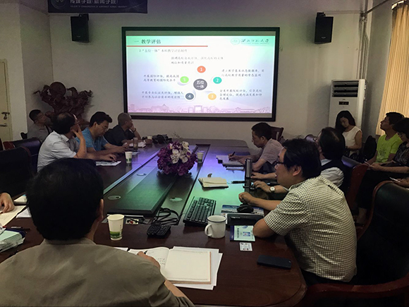 2017年6月28日上午,公司在310会议室举行本科教学审核评估推进会,全院教职工参加会议。会议由gg999策略手机白菜(新闻公司)党委书记刘永雷主持。