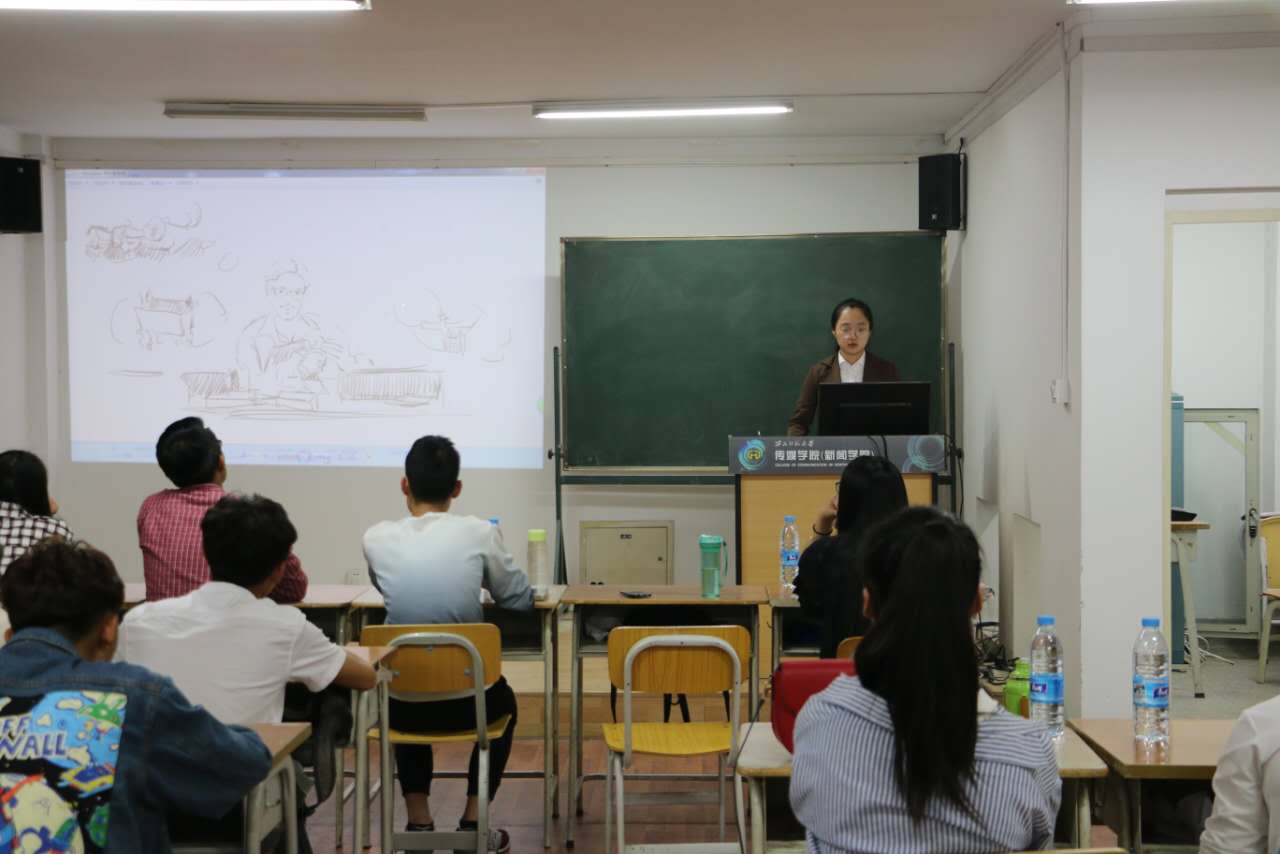 随后,“奋发图强”创新团队的李俊颖同学介绍了他们的创业故事。“我从大一到大二每天睡觉基本没超过5个小时。比如要做一个视频,我一星期基本上都是通宵的。”李俊颖同学的“奋发图强”创新团队针对墙绘市场推出定制服务,“别的团队只能拿出一个墙绘方案,我们团队能拿出三个”。专业的团队,分工明确,这既是独具特色的墙绘艺术,也是市场需要的独特的装饰方案。
