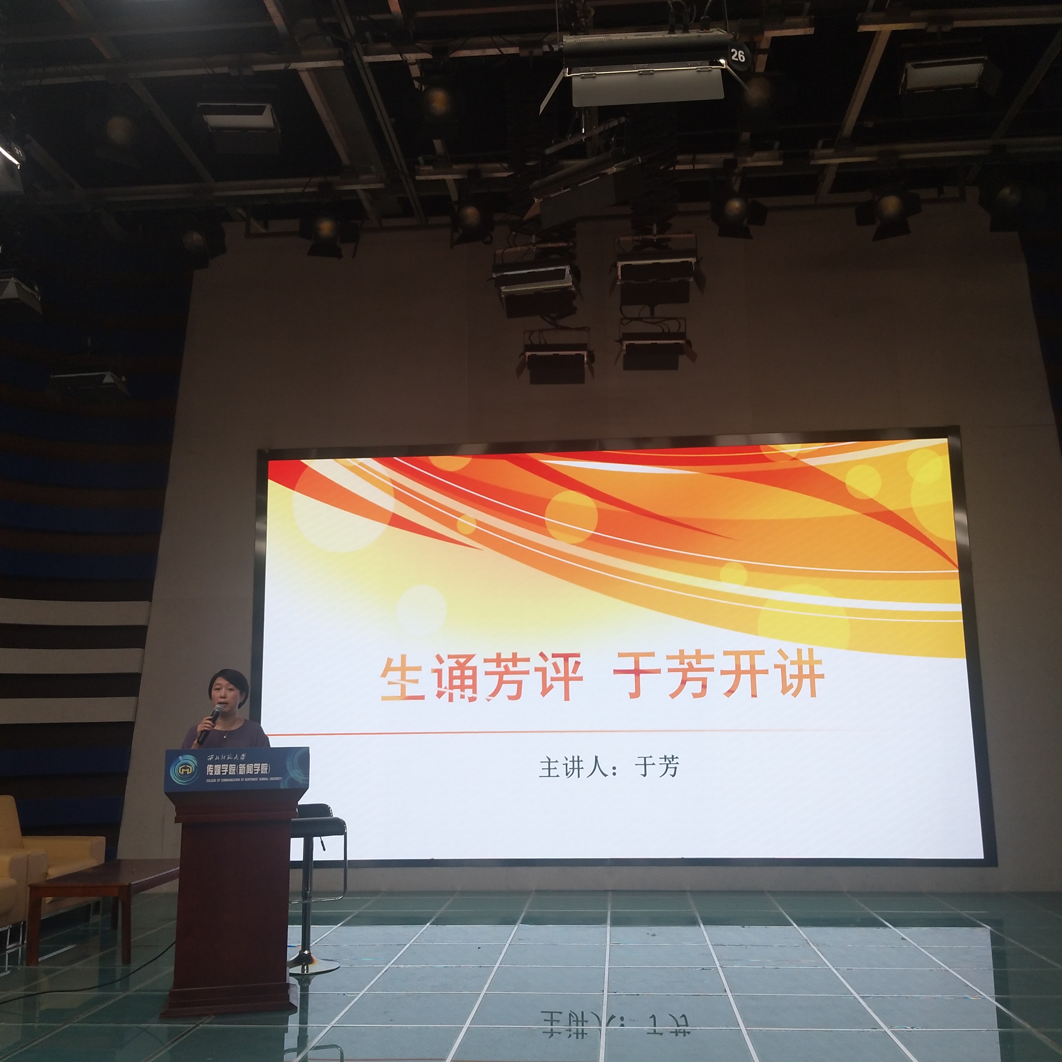 9月21日上午,著名主持人,国家级普通话测试员,中央人民广播电台“夏青杯”朗诵大赛甘肃赛区组委会秘书长于芳老师在gg999策略手机白菜演播厅作了题为“生诵芳评”的学术讲座。此项活动是公司“六艺讲坛”系列学术活动之一。公司播音与主持艺术系系主任李丽老师、杜臣弘宇老师及全体员工参加了此次讲座。