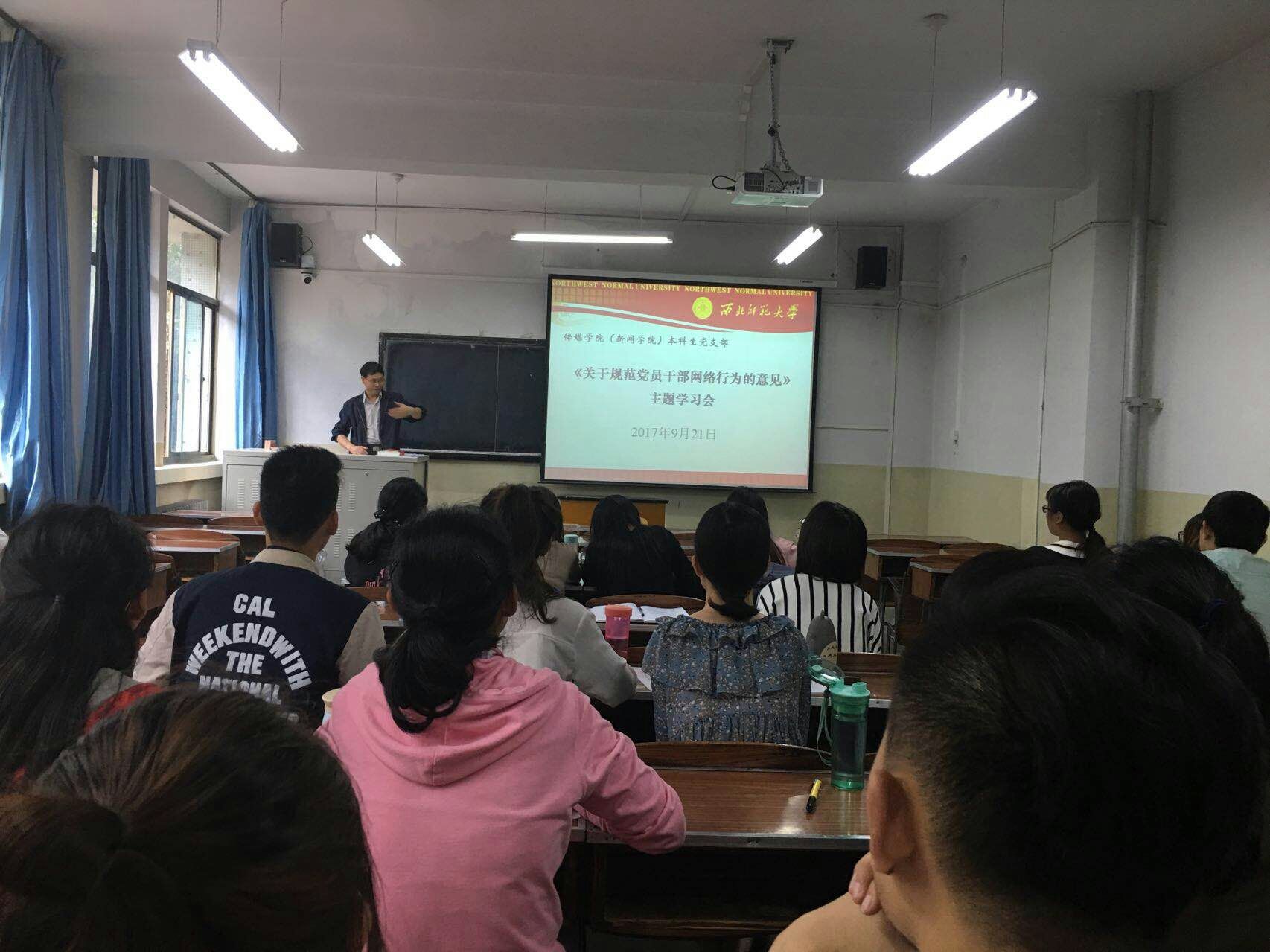 9月21日下午四点半,gg999策略手机白菜本科生党员主题学习会在教学3号楼202教室召开。公司党委书记刘永雷,团委书记赵洁及全体在校本科生党员参加了此次学习会。学习会分为两个阶段,第一阶段由党员代表发言,交流学习《习近平的七年知青岁月》一书的感悟。第二阶段全体党员集中学习了由中组部、中宣部、中央网信办联合印发的《关于规范党员干部网络行为的意见》。