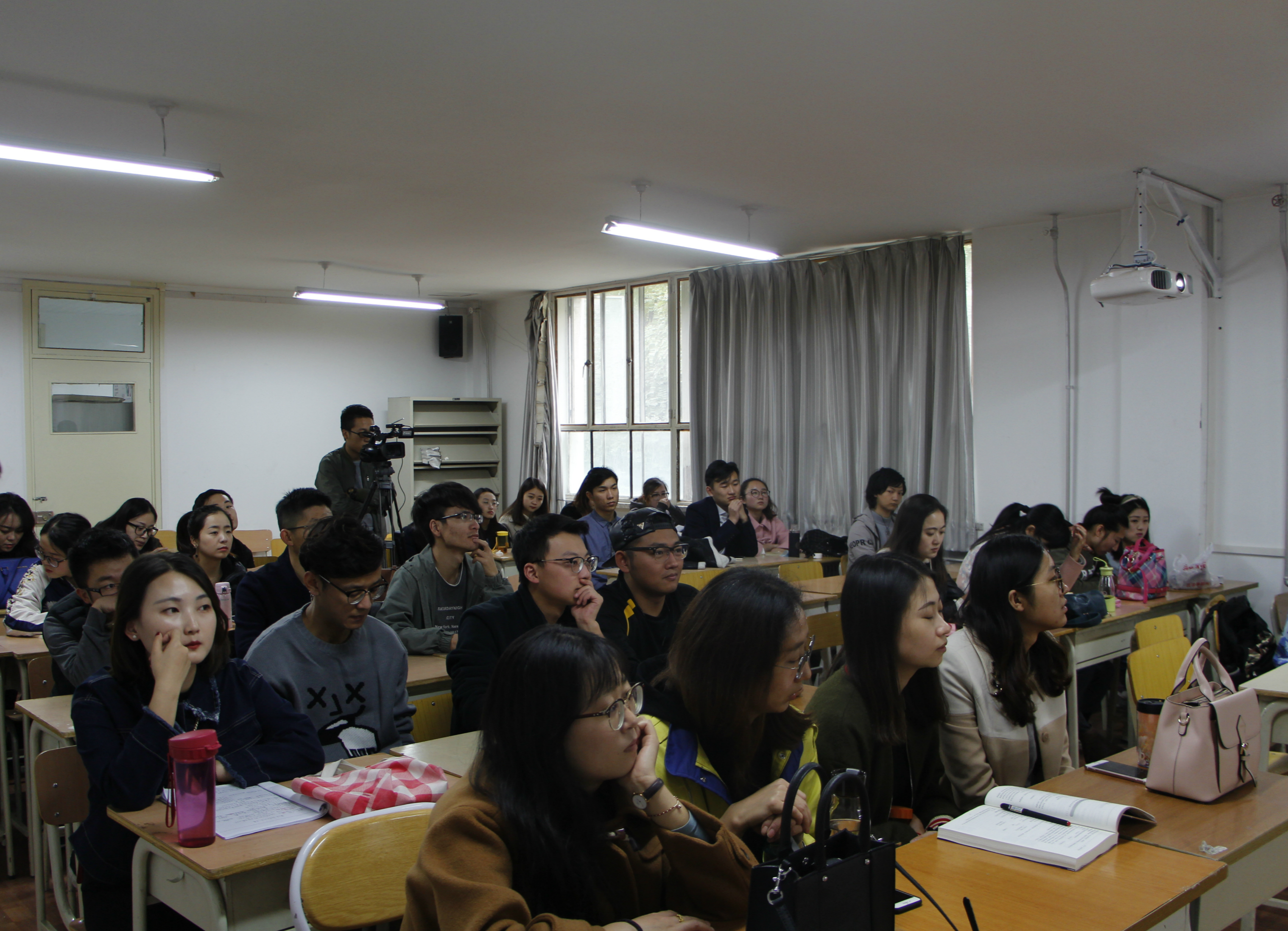 谈及影视创作,金朝晖为同学们分享了自己在影视方面的经验及见解,他劝勉同学们,要坚持自己的风格,在喧嚣中保持独我的心形,鼓励同学们培养个性化发展。整场讲座进行了三个小时,同学们受益匪浅。