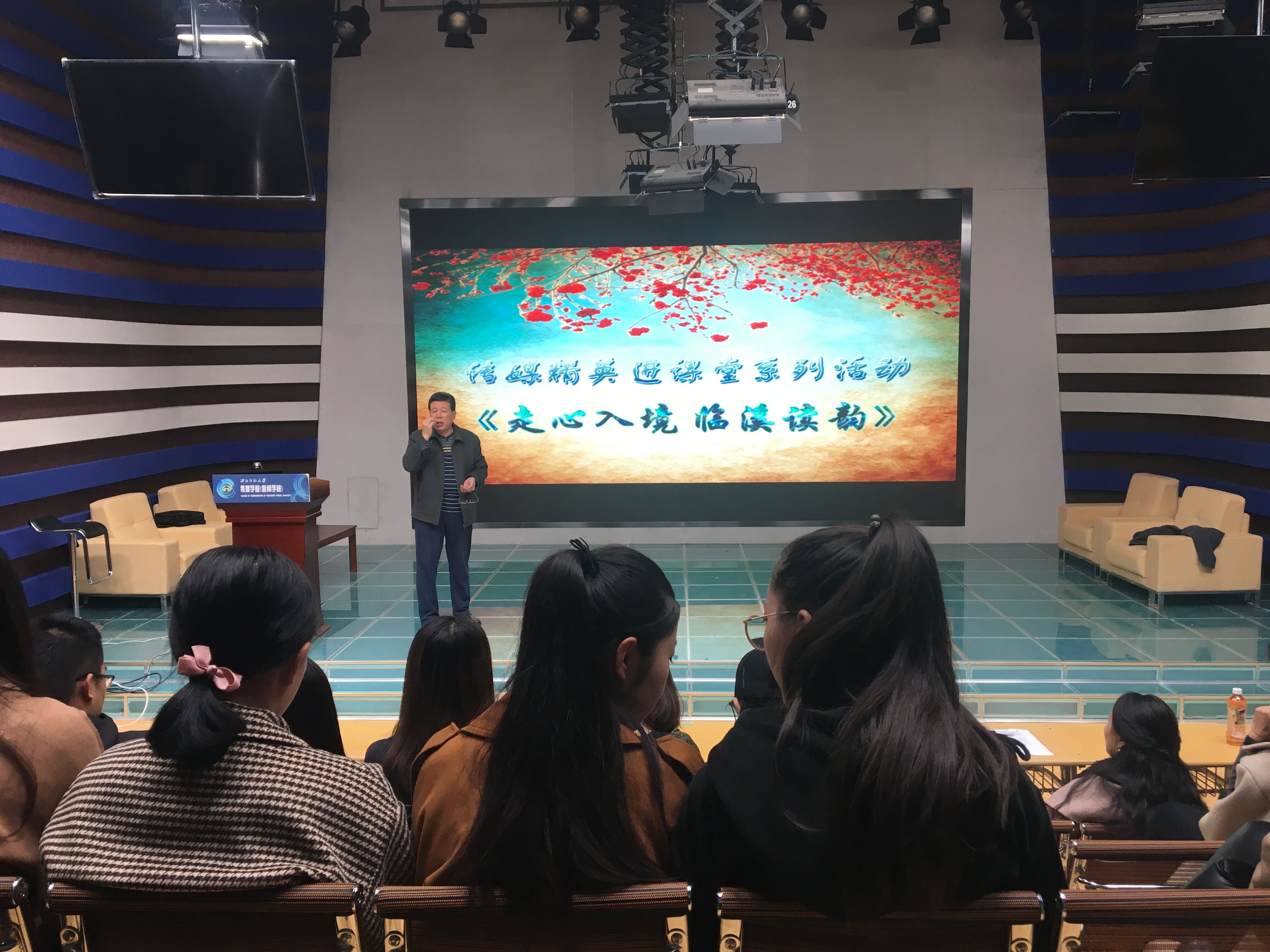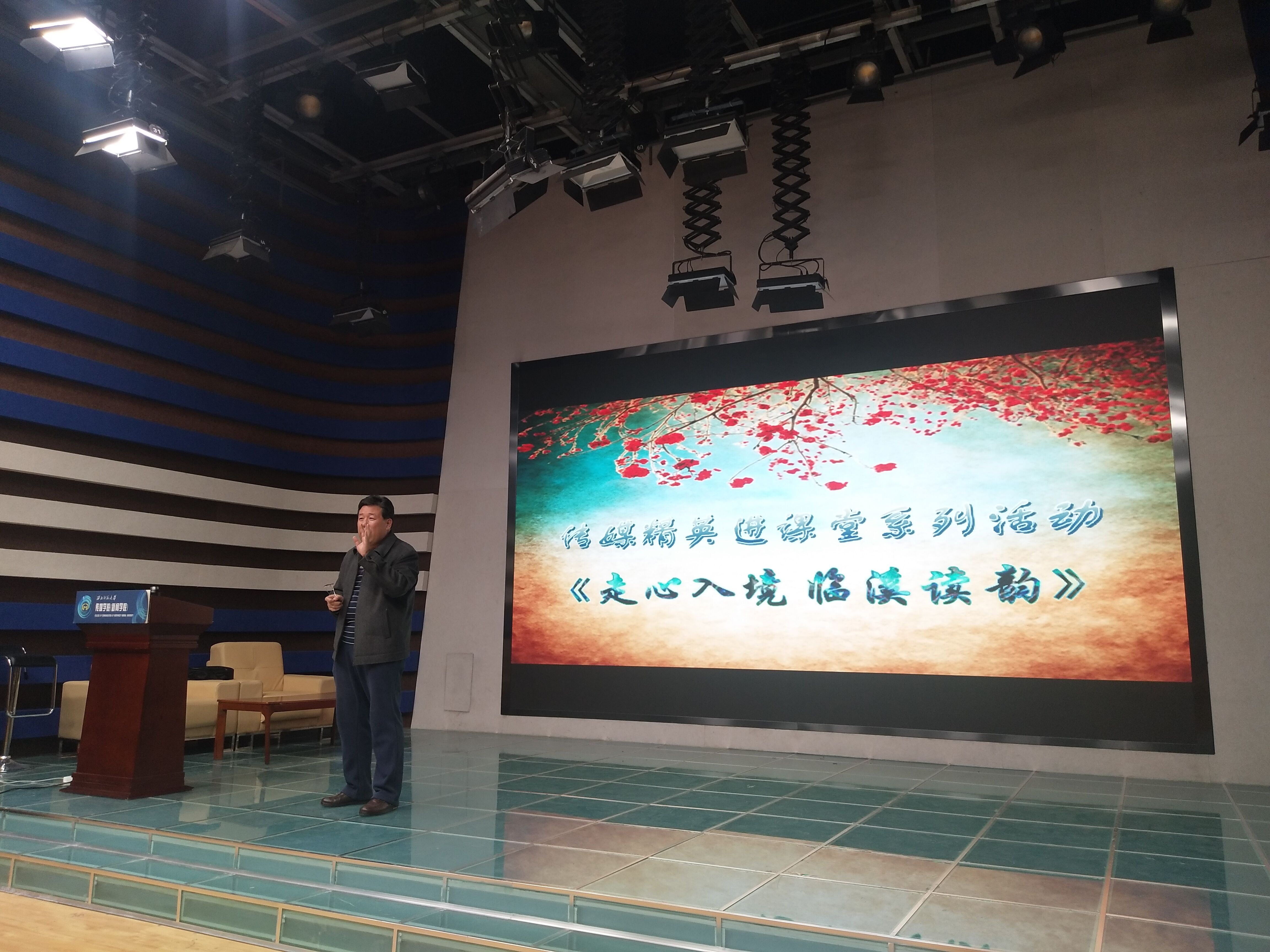 10月26日上午,应gg999策略手机白菜邀请,甘肃省著名播音员,中宣部“五个一工程奖”和全国“广播文艺大奖”获得者临溪老师走进“传媒精英进课堂”活动,在gg999策略手机白菜演播厅做了题为《走心入境 临溪读韵》的分享,为播音班员工上了一课。公司播音与主持艺术系全体同学参加此次学习,系主任李丽老师聆听此次分享。