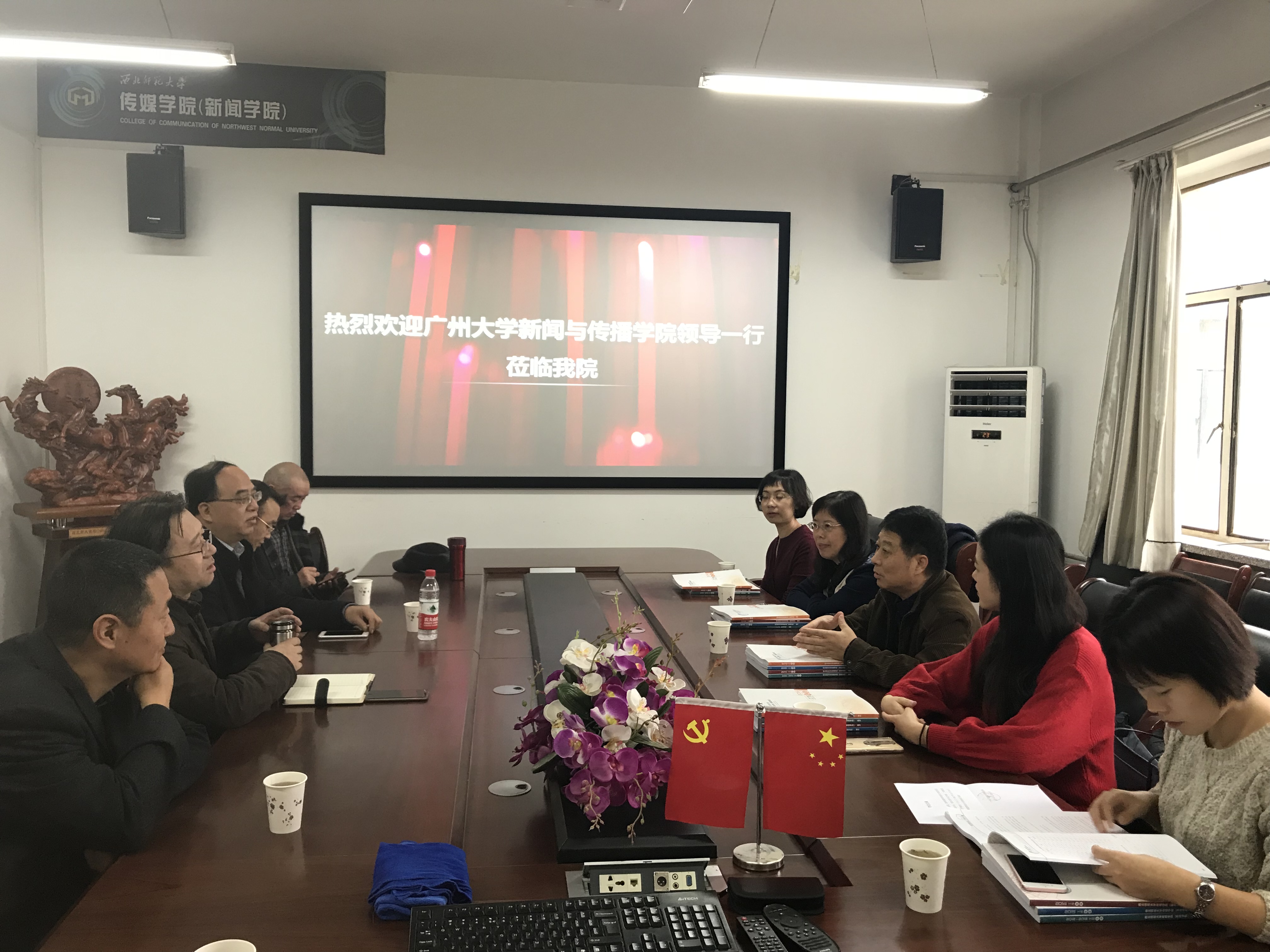 11月17日上午,广州大学新闻与传播公司党委书记李雁,广播电视艺术学系学科带头人戴剑平教授等一行5人莅临gg999策略手机白菜,在310会议室进行了交流座谈。会议由gg999策略手机白菜经理徐兆寿主持。