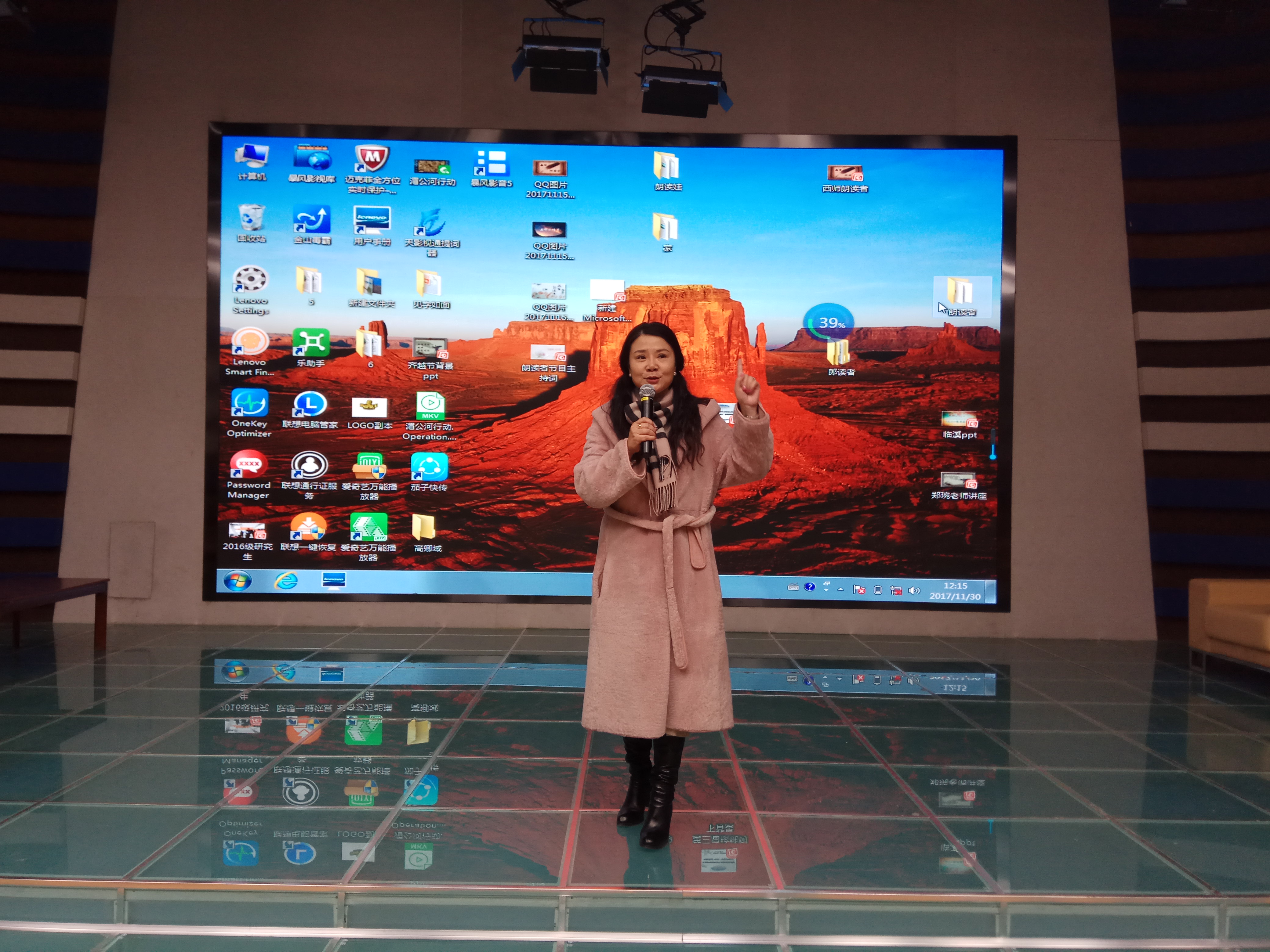 首先,周劲翔(周微)老师用自己工作的经历,以“读到之处、悦在其中”的轻松方式,向大家传递主流文化观及阅读的力量。她先用图片的方式讲述了自己职业生活中的丰富经历,特别是《轻阅读》节目中的采访技巧、采访感受,每一张图片背后都有深远的意义和情感。比如在采访作家毕飞宇时,周劲翔(周微)老师做了大量的准备,她了解到作家毕飞宇的代表作《推拿》中有父亲失明的元素,于是,她以父亲眼睛失明为切入点,拉近了与采访嘉宾的距离。在采访诗人舒婷时,周劲翔(周微)老师朗诵了一首她的代表作《致橡树》,一下子使双方距离更近,采访也更为愉快。“采访时要找到嘉宾的兴奋点”,“如果采访对象是一个健谈的人,一定要让他(她)顺着说下去。”周劲翔(周微)老师说。