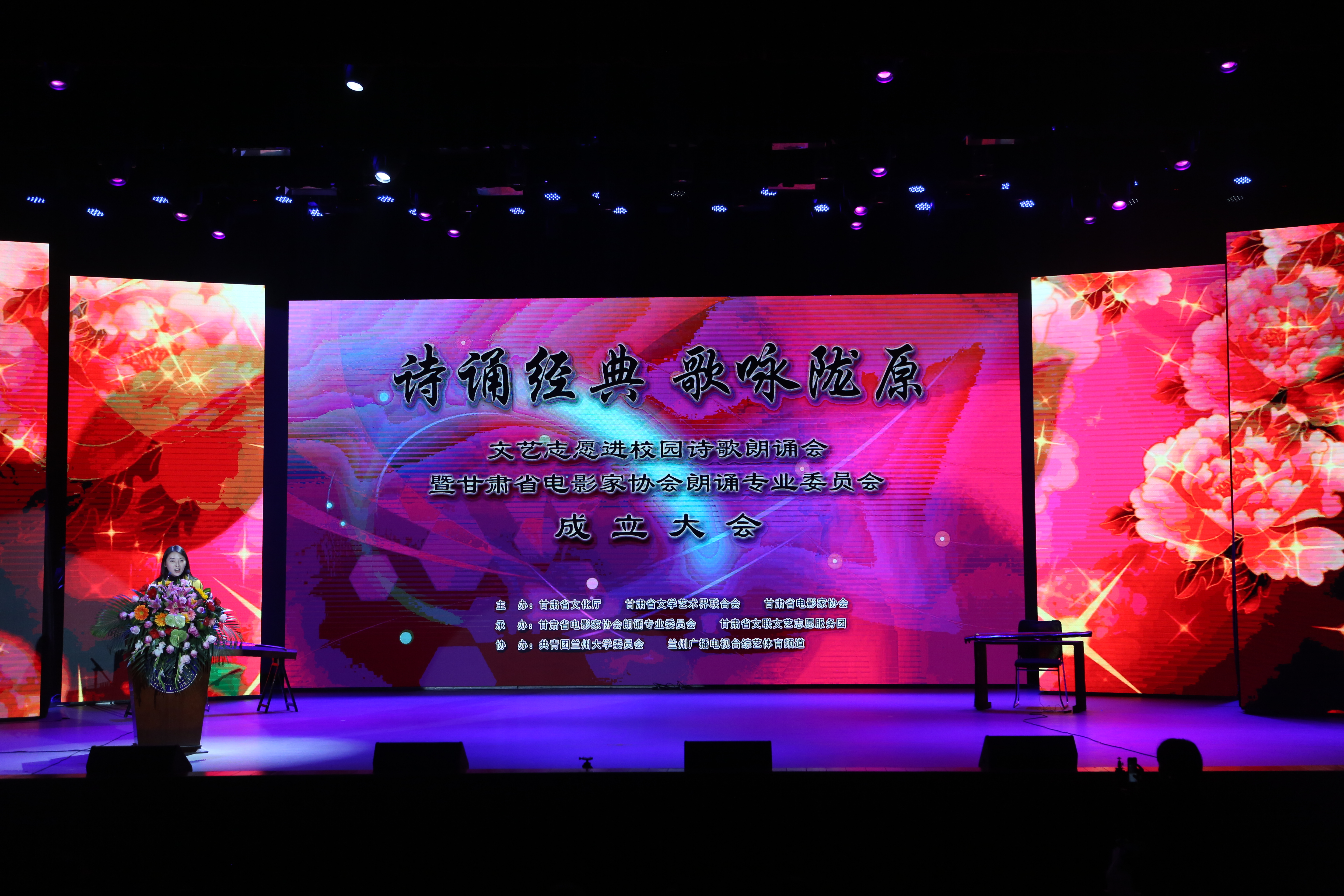 本次朗诵会由甘肃广电总台主持人杨涛,高妮娜主持。著名朗诵艺术家徐涛,著名朗诵艺术家、中央人民广播电台“夏青杯”朗诵大赛组委会秘书长王静和省内著名朗诵艺术家边城、黄睿、临溪、于芳等表演了朗诵节目。本次朗诵会由甘肃省文化厅、甘肃省文学艺术界联合会、甘肃省电影家协会主办,甘肃省电影家协会朗诵专业委员会、甘肃省文联文艺志愿服务团承办,共青团兰州大学委员会、兰州广播电视台综艺体育频道协办。gg999策略手机白菜、西北民族大学音乐公司、甘肃省幽兰琴馆成为本次朗诵会的鸣谢单位。