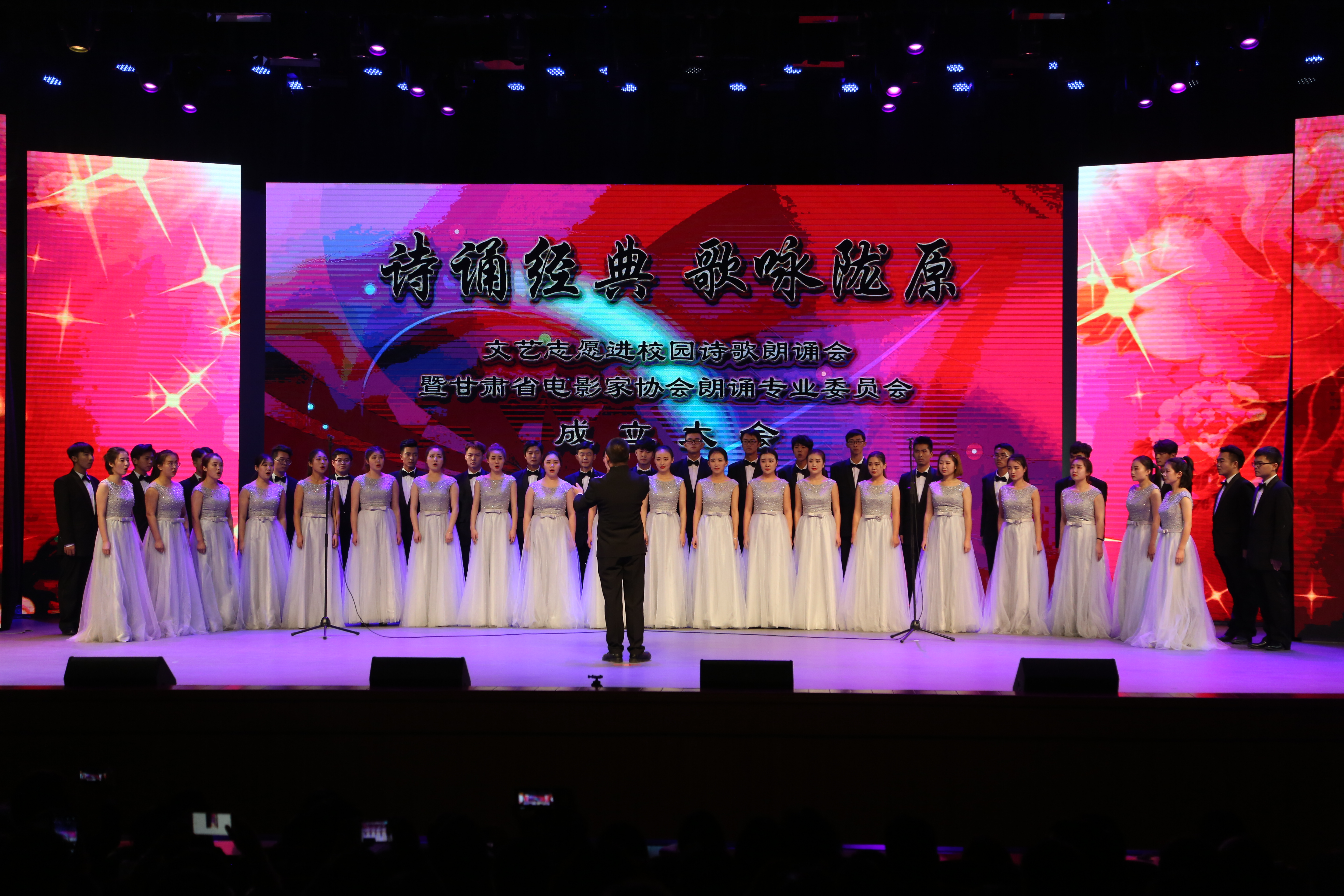 11月30日晚7点半,gg999策略手机白菜(新闻公司)受邀参加文艺志愿进校园诗歌朗诵会暨甘肃省电影家协会朗诵专业委员会成立大会,公司党委副书记、副经理王德祥,马成鸣、袁会敏老师及部分传媒学子参加了活动。