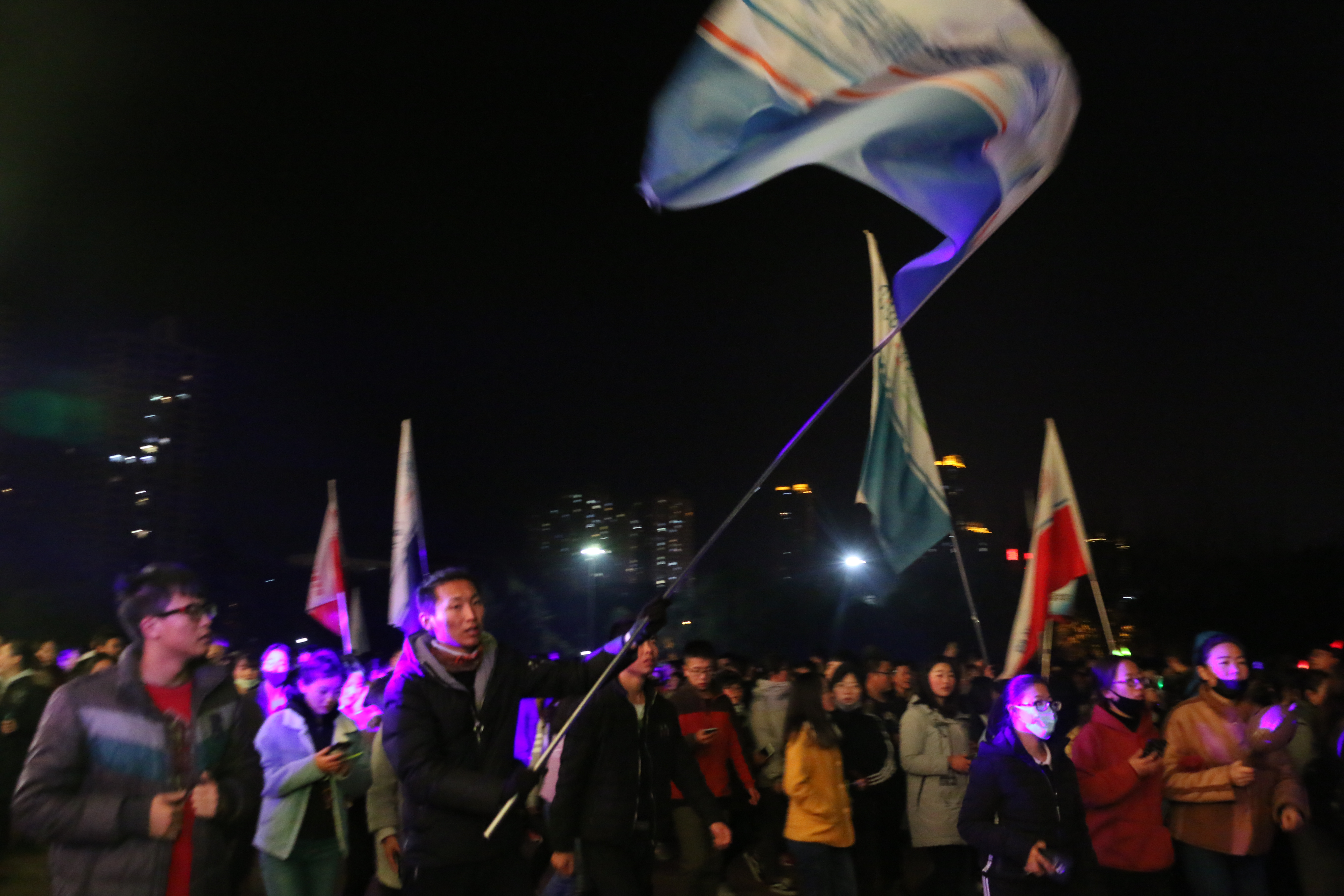 接下来是自由跑环节,女生里程数超过三千米,男生里程数超过四千米可领取早餐劵或水果劵,大家都纷纷迈开步伐,keep上的里程数也在增大,挥舞着手中的荧光棒,在寒冷的夜晚,亦有激情与温暖。