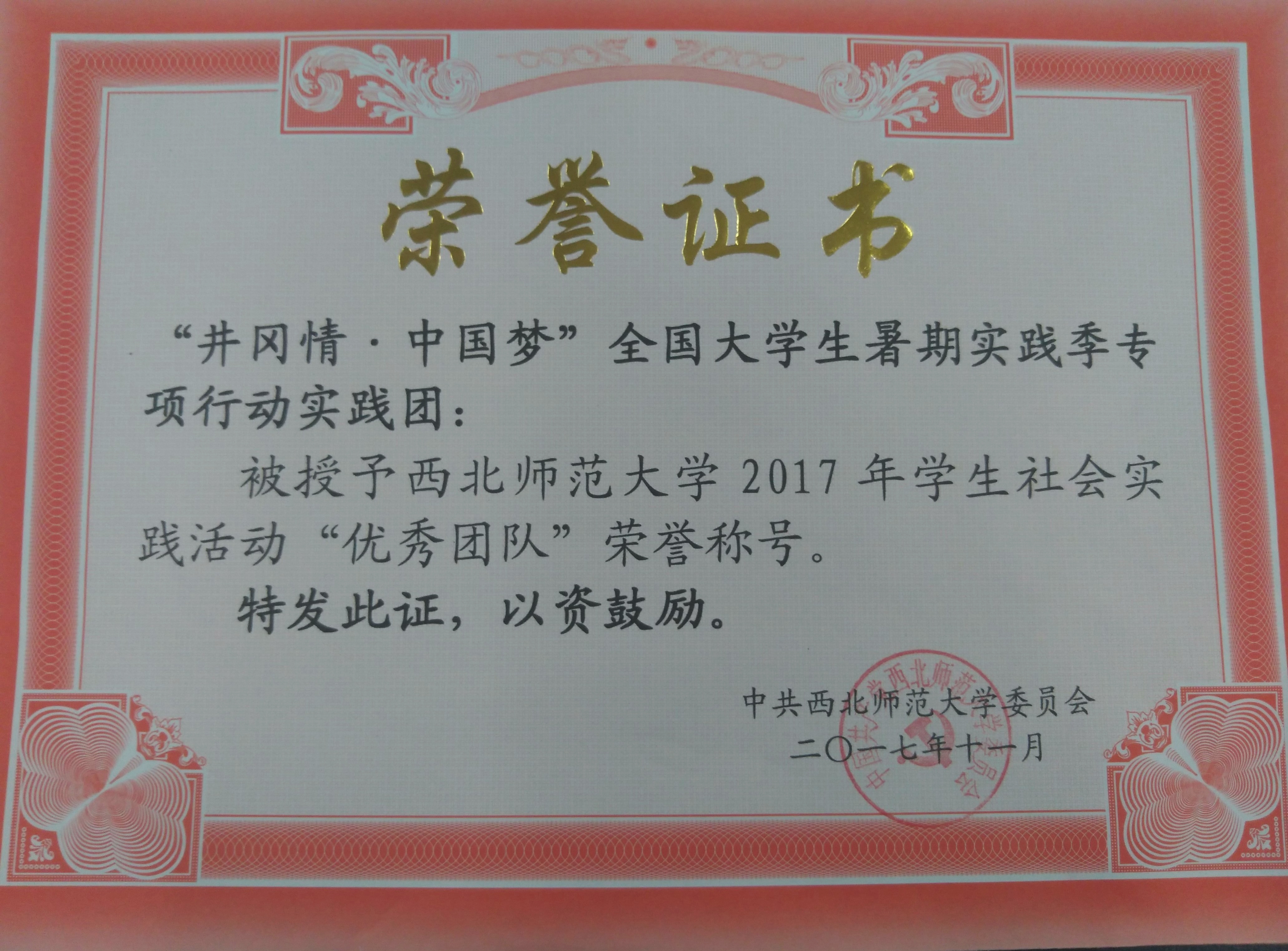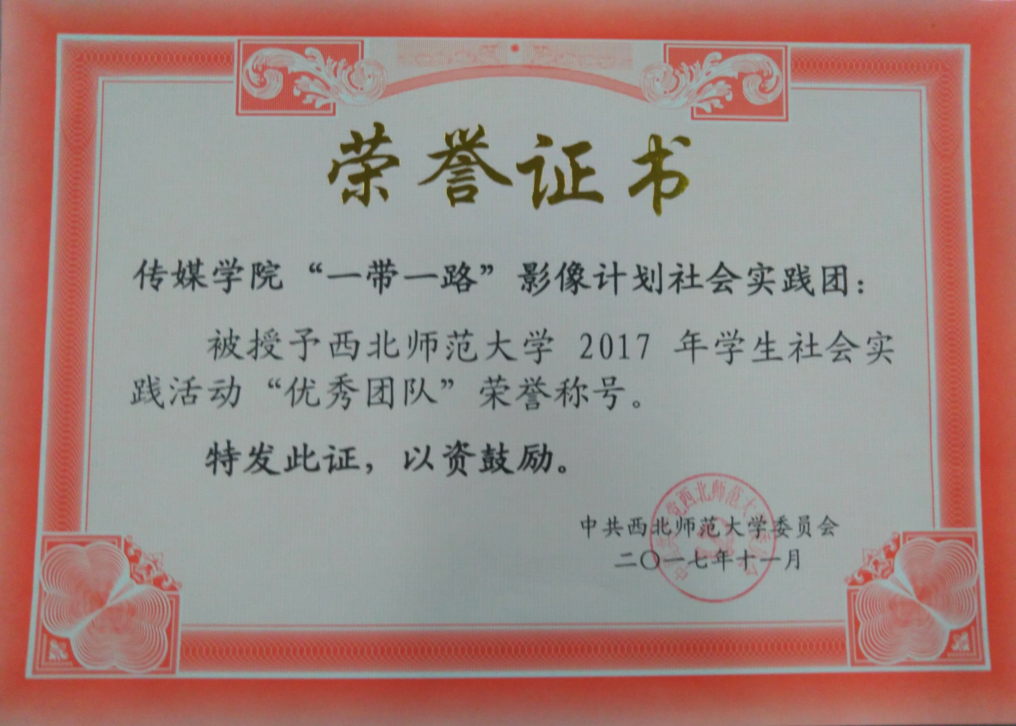 公司开展的另一项“一带一路”影像计划社会实践团以“一带一路”甘肃带非物质文化遗产、乡土文化传承保护及传播为主题,进行为期一周的非物质文化遗产纪录片拍摄、走访调研活动,被授予gg999策略手机白菜2017年员工社会实践活动“优秀团队”荣誉称号。带队老师袁会敏老师荣获gg999策略手机白菜2017年员工会实践活动“优秀指导教师”荣誉称号。