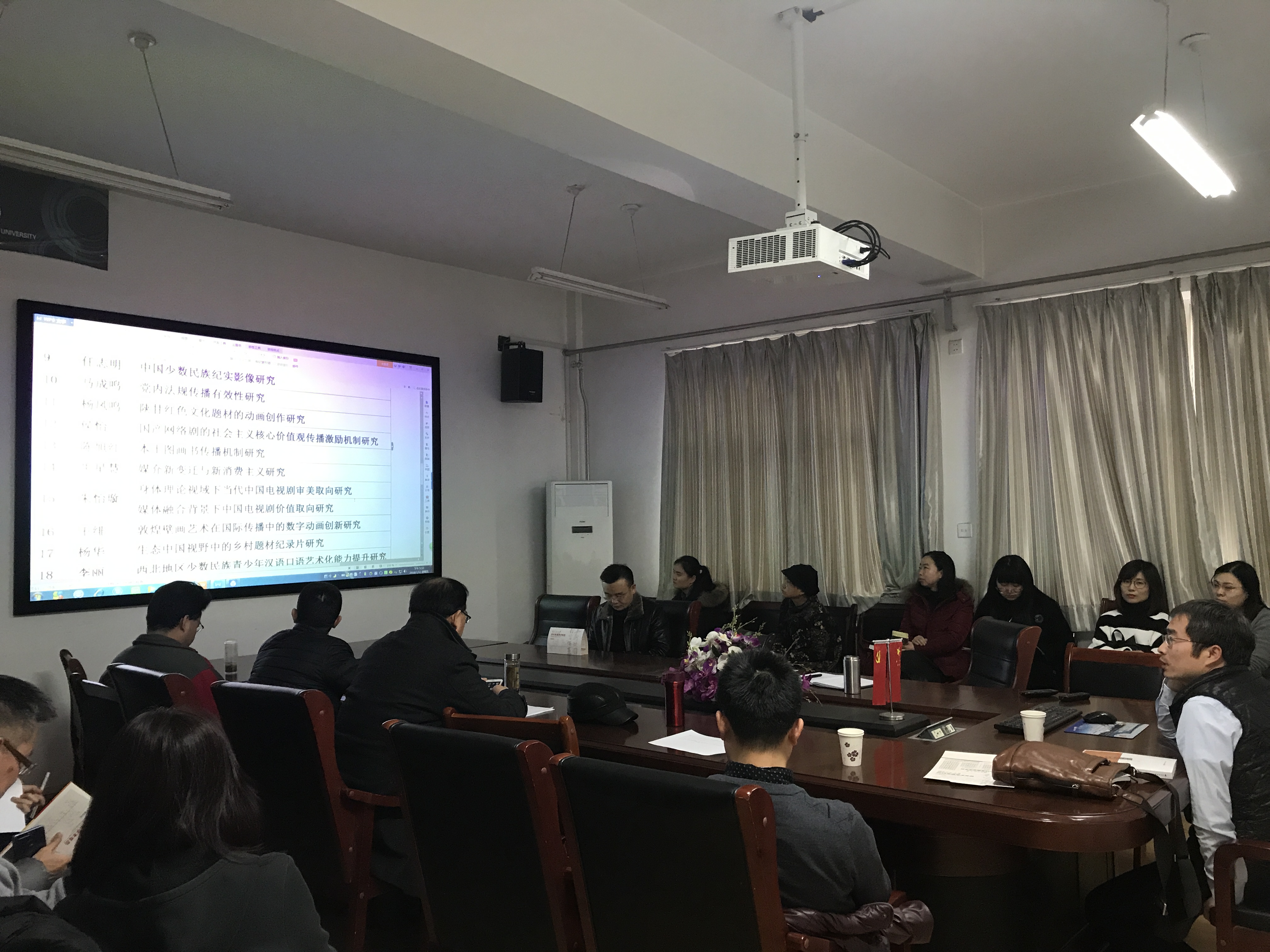 1月12日,中国传媒大学研究员、博士生导师,《现代传播》编辑部主任,中国高校影视学会秘书长张国涛在gg999策略手机白菜310会议室为公司教师申请2018年国家社科基金项目的题目进行了逐一解读。