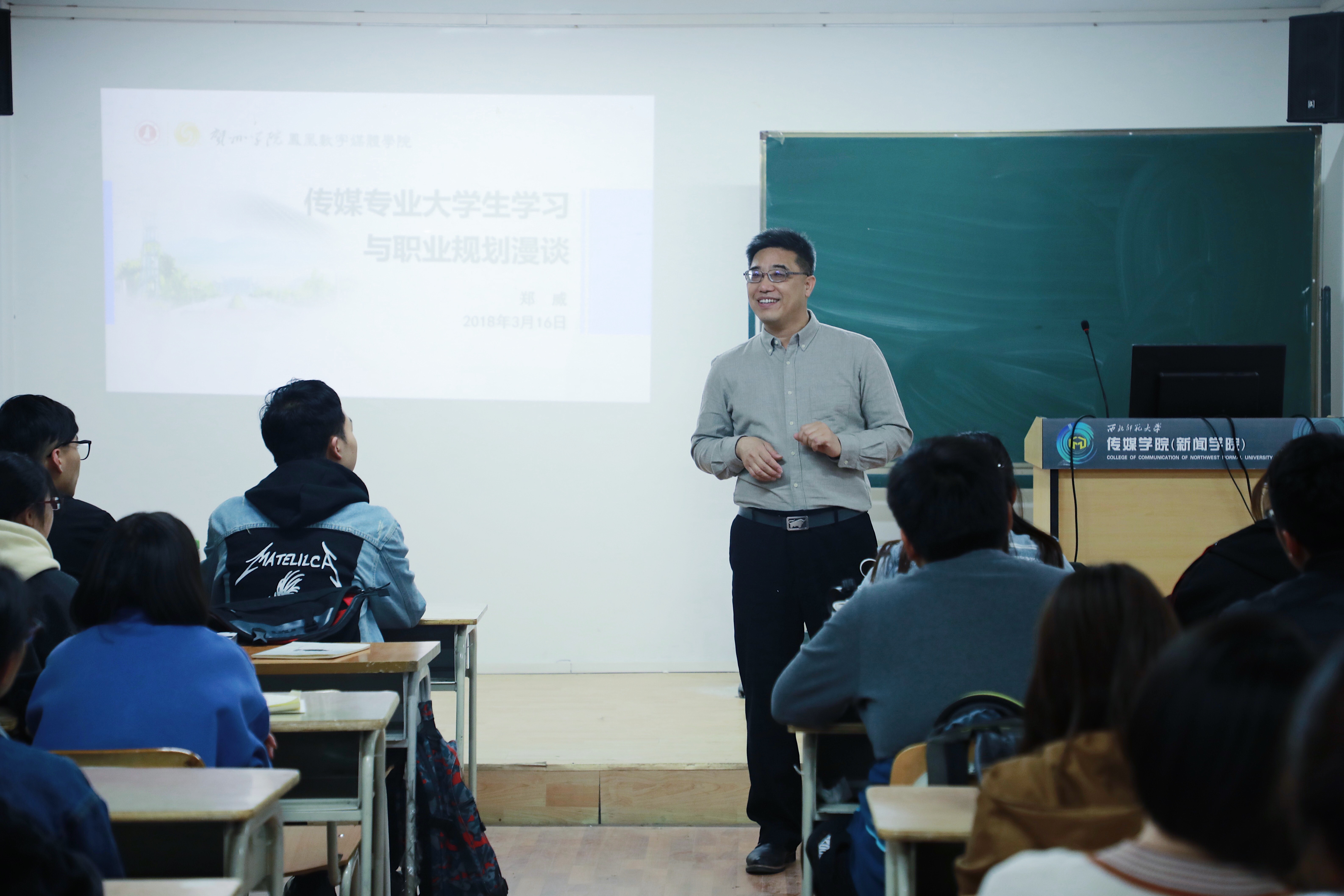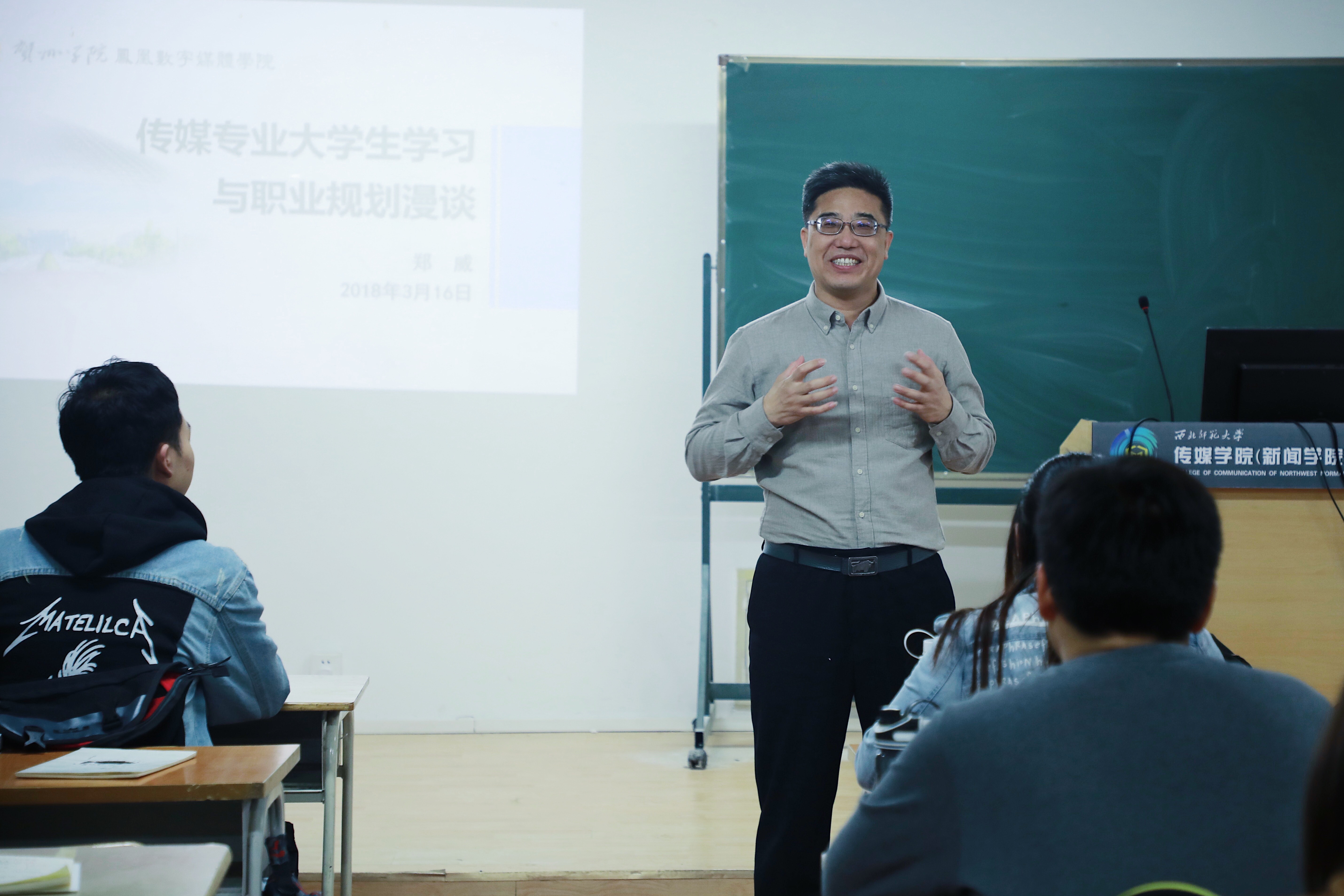 3月16日,贺州公司文化与gg999策略手机白菜(凤凰数字媒体公司)经理、副教授郑威在公司201教室与2016级广播电视编导专业的同学们进行了一场座谈会。会议开始之前,公司经理徐兆寿与全体同学对郑经理的到来表示了热烈的欢迎。