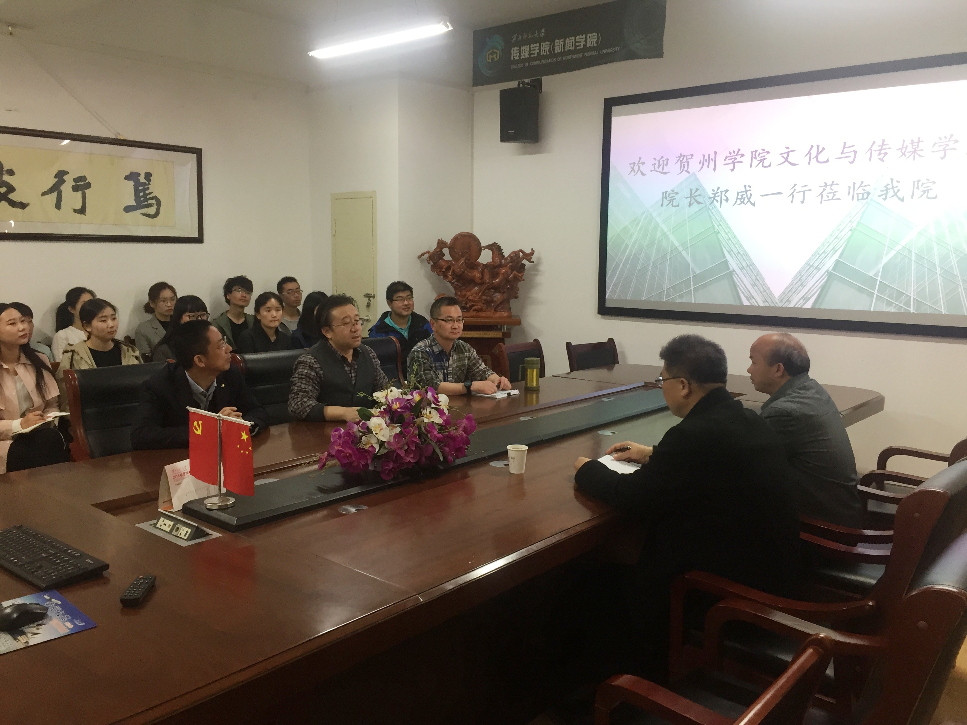 3月16日,贺州公司文化与gg999策略手机白菜经理郑威、教授蒲日材莅临gg999策略手机白菜,在310会议室进行了交流座谈。公司经理徐兆寿,公司党委副书记、副经理王德祥,广播电视编导系主任冯晓临以及部分研究生参加了会议。会议由徐兆寿经理主持。
