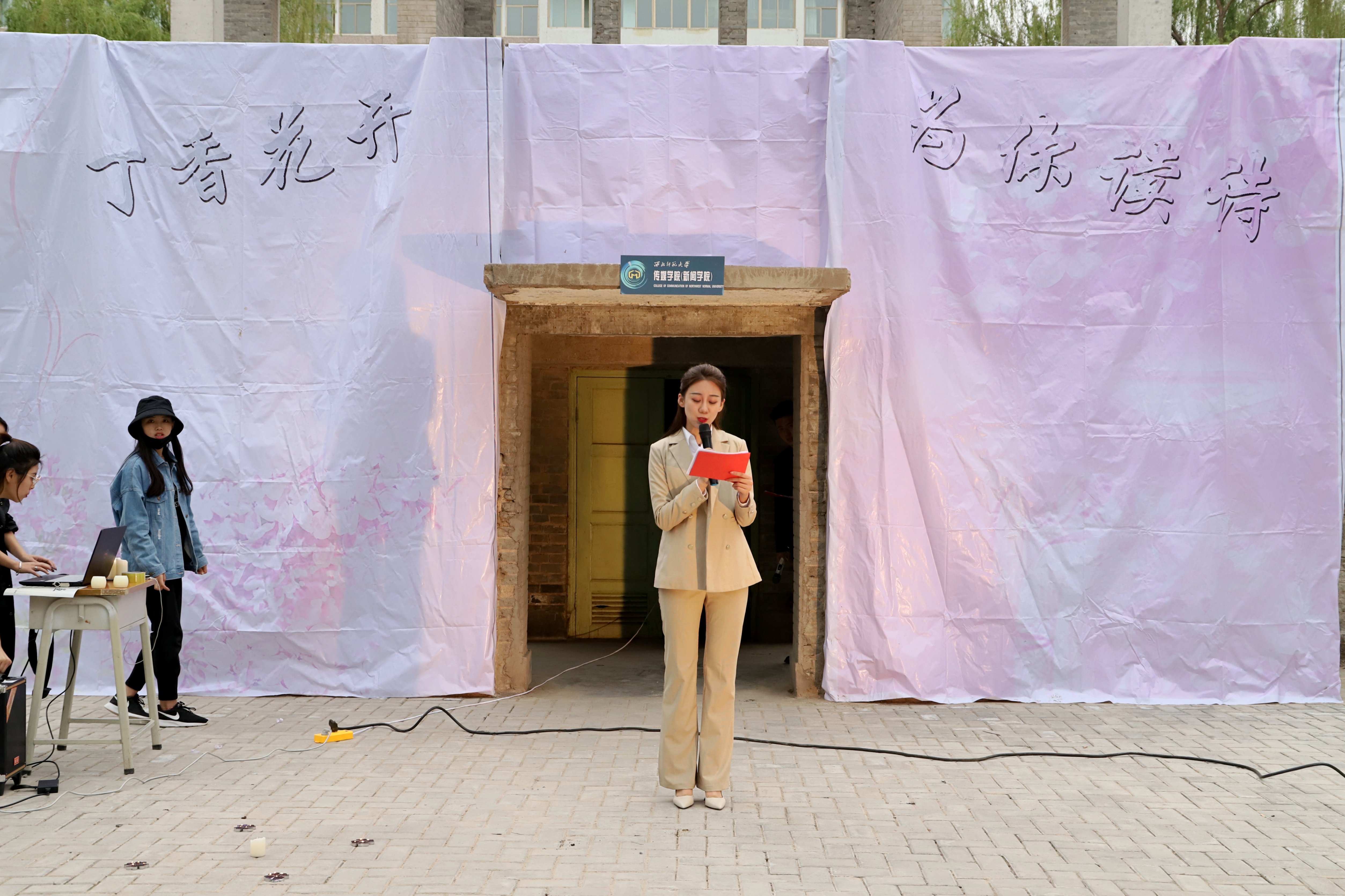 下午6点40分,旧文科楼绿地广场,主持人王乐天以“我爱gg999策略手机白菜”的藏头诗揭开节目序幕。