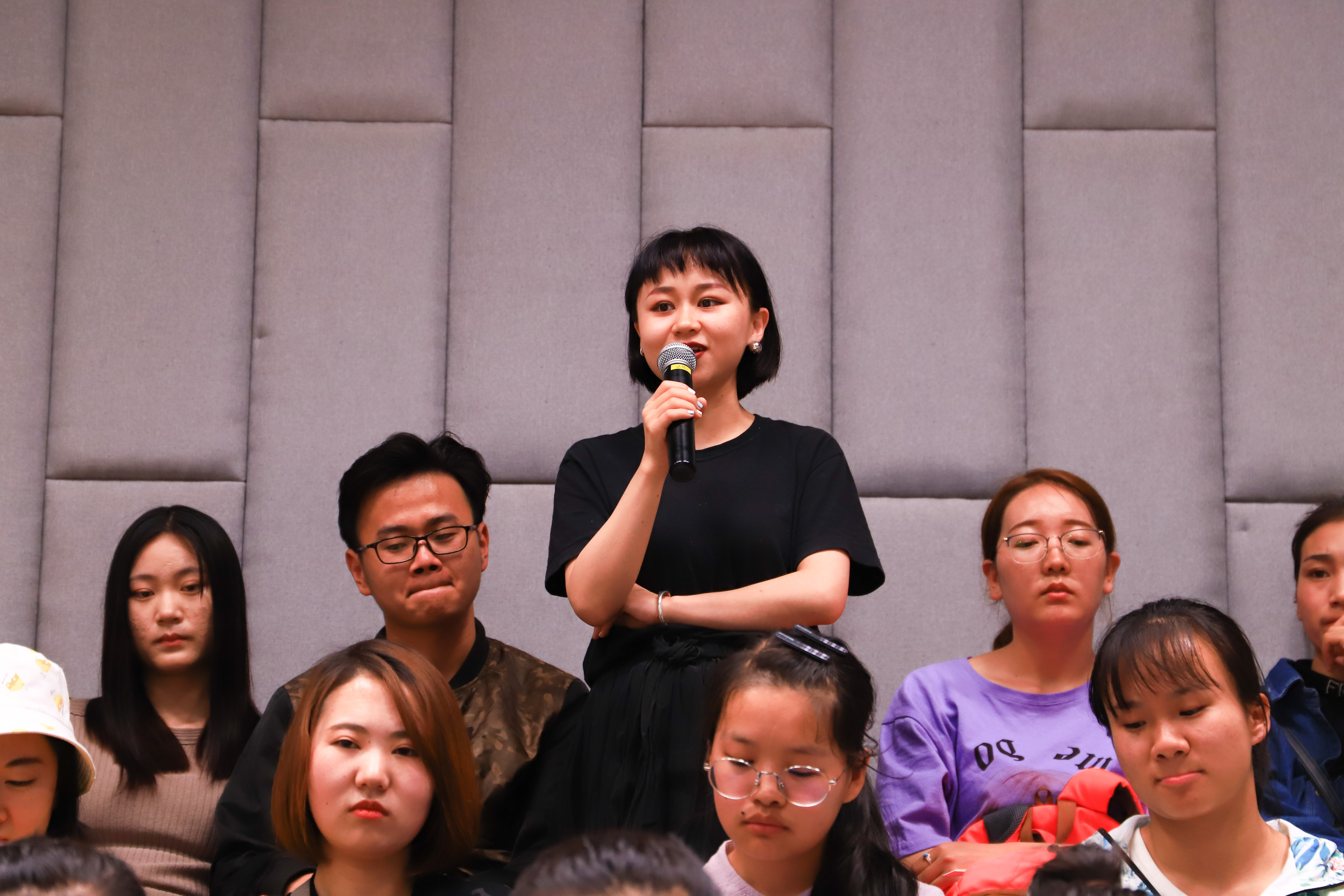 随后,赵丽瑾老师主持了《南京南》映后沙龙交流环节,现场气氛热烈,同学们积极发言提问、讨论。当有同学问到应如何看待片中李浩的边缘人物形象时,李林老师认为我们不应该片面的看待边缘人物局外人的身份;马成鸣老师观影后则对李浩在宿舍被边缘的现象提出了从辅导员角度的思考;张哲老师认为该片值得同学们学习,但在剪辑上可以压缩,显得更加紧凑;冯晓临老师认为我们在拍摄电影时应当注意怎么讲好故事,先考虑内容,再讨论形式,不要试图在一个电影中表达太多东西。