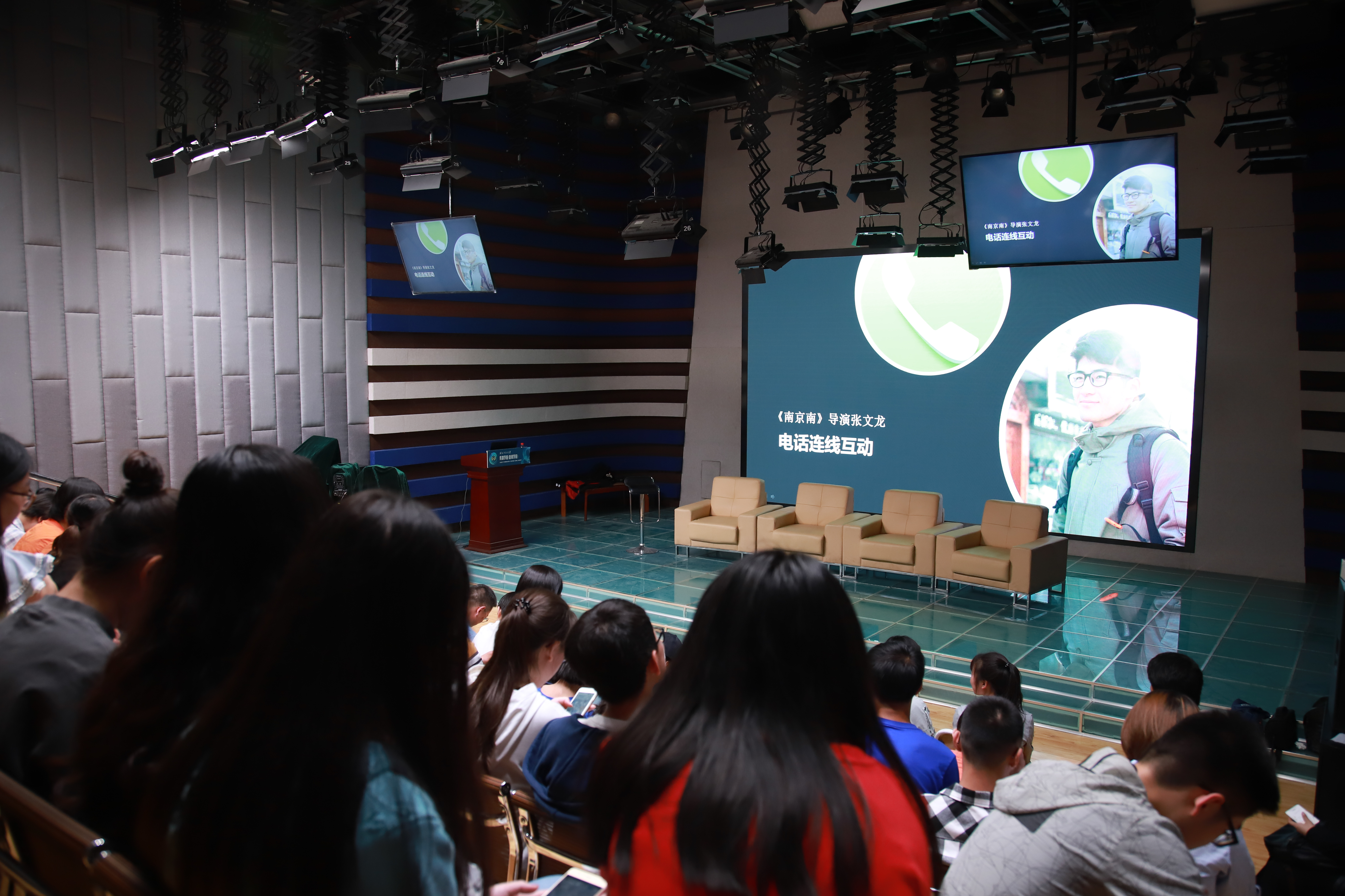 观影结束后,演播厅现场电话连线了导演张文龙,现场观众与导演展开了一场“隔空”互动。在提及为什么要拍这部电影的时候,他说:“既是出于对电影拍摄的喜爱,也是记录自己即将逝去的大学青春,留下青春的印记”,并表示现在已经写好新片的剧本了,将一直把自己的爱好坚持下去。
