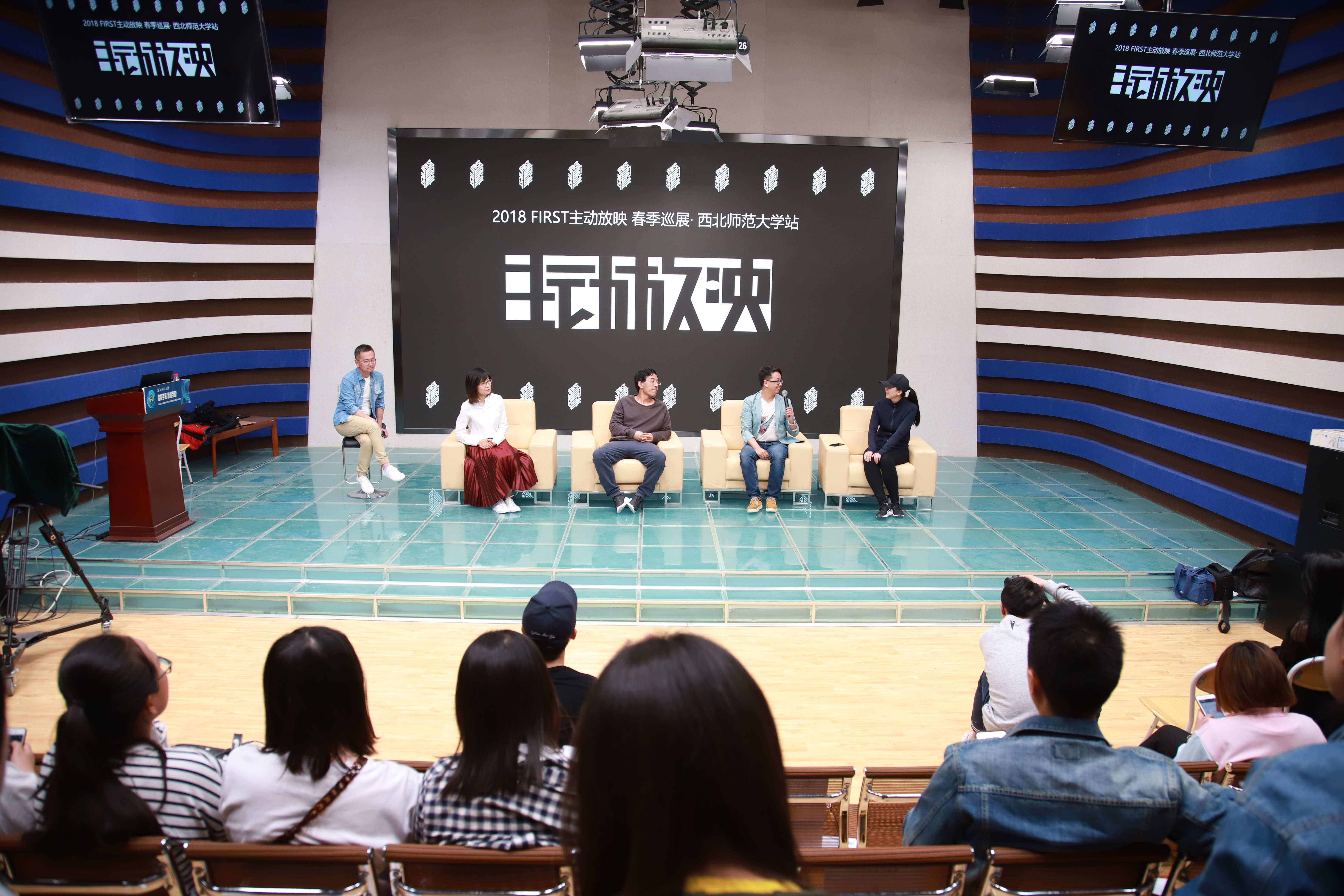 2018年5月3日晚上7点,gg999策略手机白菜八部半放映室再次携手FIRST青年电影展,在gg999策略手机白菜演播厅举行2018FIRST主动放映·春季巡展·gg999策略手机白菜站站主动放映活动。公司广播电视编导系主任冯晓临、播音与主持系主任李丽以及马成鸣、赵丽瑾、李林、张哲(兰州交通大学)、团委书记赵洁老师也到场参加,并与同学们讨论交流。公司八部半放映室由赵丽瑾老师主持,本次巡展由公司员工彭泉锦策展,吕津豫、穆倩负责活动宣传,崔续明、杨泽凯、安英豪负责现场统筹。本次活动除本校员工积极参与外,还吸引了来自兰州大学、兰州交通大学、兰州城市公司等多所高校的近百余名师生参加了此次活动。