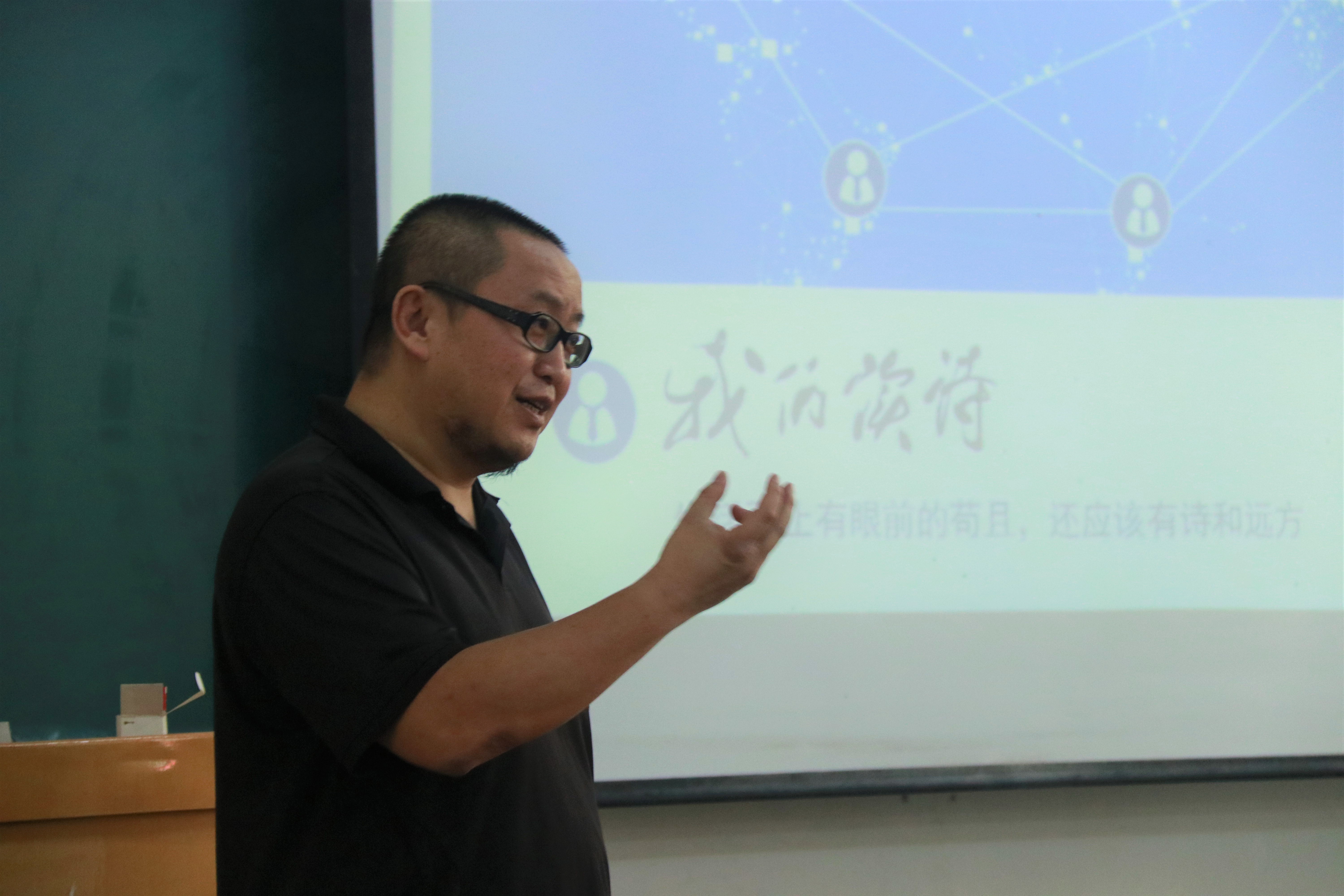 随后,张海龙老师继续开展讲座。张海龙老师为西北师大中文系员工,著名作家,媒体人,现为杭州日报影视工作室主任。