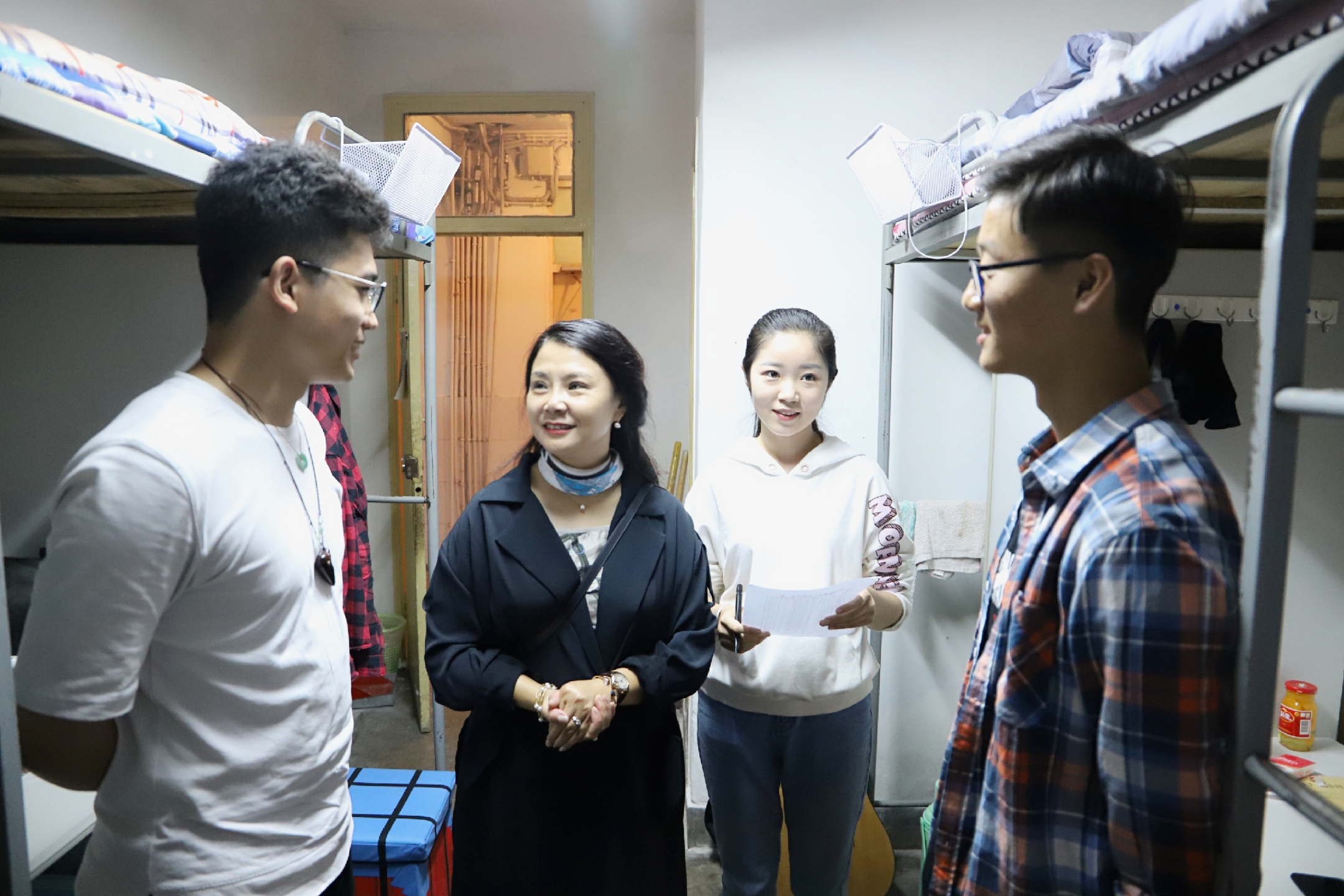 9月5日晚,gg999策略手机白菜副经理杨华、2018级各班班主任以及辅导员对2018级本科生和研究生宿舍进行走访。