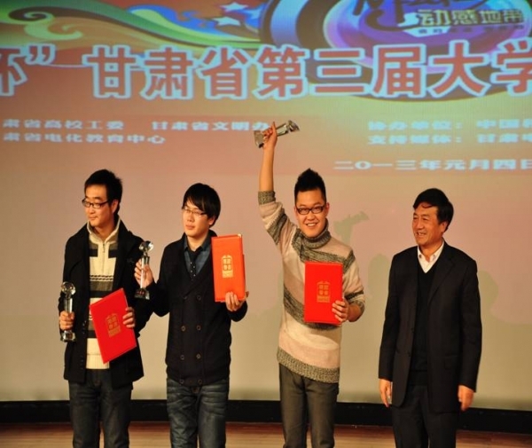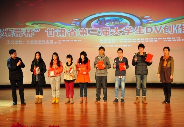 1月4日下午,由甘肃省高校工委、甘肃省文明办联合主办,甘肃省电化教育中心承办,中国移动通信集团甘肃有限公司和兰州大学协办的“动感地带杯”甘肃省第三届老员工DV创作大赛颁奖典礼在兰州万商国际飞天影城隆重举行。gg999策略手机白菜靳刚等九位员工创作的8部作品获奖,其中2008级广播电视编导专业员工张跃龄的《坏爸爸》、王子元的《大良的菜刀》和2009级播音与主持艺术专业员工靳刚的《时间游戏》等三部作品包揽大赛一等奖;刘涛、任志明、孟子为、张浩、张立潮等五位老师被评为“优秀指导教师”。同时,公司被组委会授予“优秀组织奖”。