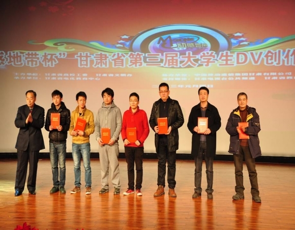 1月4日下午,由甘肃省高校工委、甘肃省 文明办联合主办,甘肃省电化教育中心承办,中国移动通信集团甘肃有限公司和兰州大学协办的“动感地带杯”甘肃省第三届老员工DV创作大赛颁奖典礼在兰州万 商国际飞天影城隆重举行。gg999策略手机白菜靳刚等九位员工创作的8部作品获奖,其中2008级广播电视编导专业员工张跃龄的《坏爸爸》、王子元的《大良的菜刀》和 2009级播音与主持艺术专业员工靳刚的《时间游戏》等三部作品包揽大赛一等奖;刘涛、任志明、孟子为、张浩、张立潮等五位老师被评为“优秀指导教师”。 同时,公司被组委会授予“优秀组织奖”。