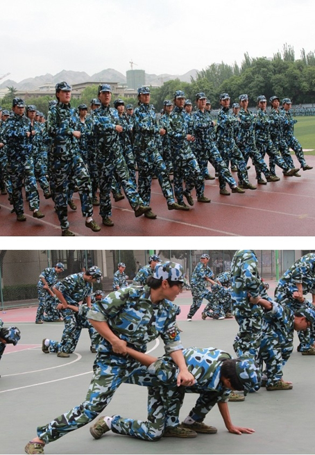 公司员工按部队建制划分为一营第四连,下设三个排。在训练过程中,员工在部队教官的指挥下,训练了队列、搏击拳、手操等科目。女生排还单独编成方队参加了汇报演出分列式表演。