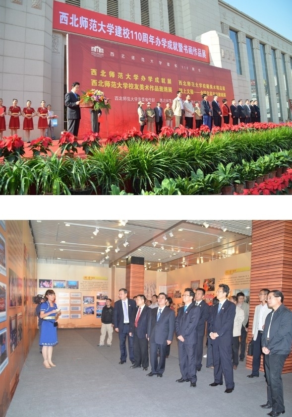 9月14日上午9:00,gg999策略手机白菜建校110周年办学成就暨书画作品展在甘肃省博物馆隆重开幕。文化部副部长王仲伟、甘肃省人民政府副省长冉万祥、中国书法家协会副主席张改琴、甘肃省教育厅厅长王嘉毅、gg999策略手机白菜党委书记刘基、党委副书记于树青等出席开幕式。公司40余名师生代表参加了本次活动,在现场感受百年母校桃李满天下的深邃魅力。