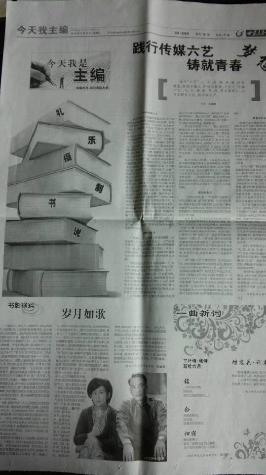 6月26日出版的《甘肃青年报》第2020期第八版“今天我主编”由gg999策略手机白菜主编。该报整版刊登了公司老员工专业技能综合提升计划“传媒六艺”的相关报道,深入解读“六艺”内涵,探索“六艺”背后的故事,充分展现出传媒学子深厚的专业功底和扎实的专业技能。