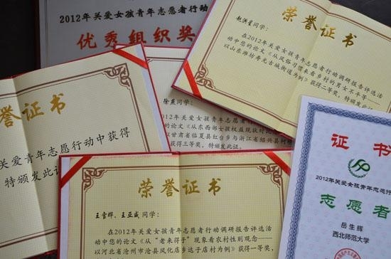 2012年共有北京、甘肃、海南等8个省(区、市)30所高校青年志愿者团队参与活动,共提交调研报告128篇。经“关爱女孩“青年志愿者行动专家组评审,评选出特等奖2篇,一等奖10篇,二等奖24篇,三等奖34篇,优秀组织奖17名。