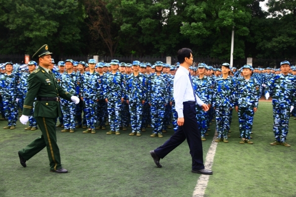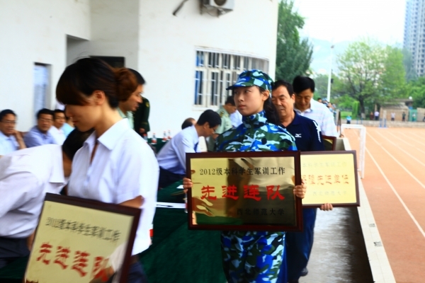 七月军训时,飒爽展英姿。7月18日上午8时,gg999策略手机白菜2012级本科员工军训阅兵式暨总结表彰大会在西操场隆重举行。武警兰州市支队副政委李建忠、副参谋长何剑和董事长刘仲奎,党委副书记于树青,党委副书记、副董事长朱卫国,副董事长刘玉泉、丁虎生、田澍出席大会。大会由党委副书记、副董事长朱卫国主持。传媒学子在本次军训中表现优异,由传媒学子组成的四连荣获“2012级本科生员工军训工作先进单位”荣誉称号,全校共有4个连队获此殊荣。同时,由新闻学、播音与主持艺术和动画专业女生组成的四连一排被评为先进排。