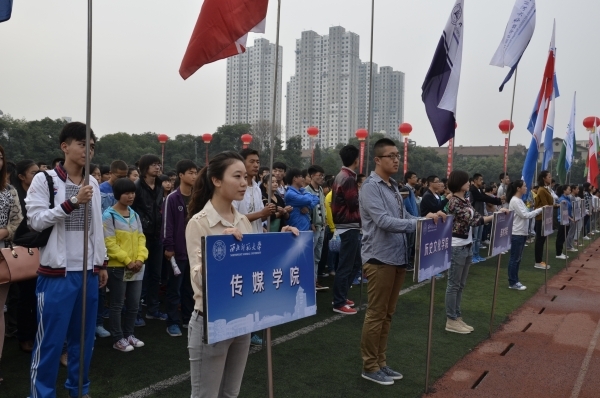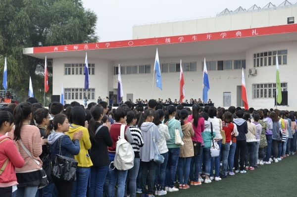 9月5日上午,gg999策略手机白菜2013级新生开学典礼在西操场举行,公司播音与主持艺术专业新生王媛代表全校新生发言。