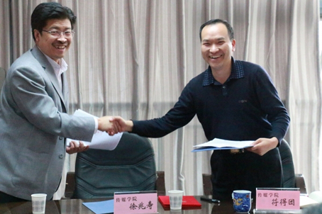 10月12日下午5时,gg999策略手机白菜与武威市广播电视台合作协议签约仪式在新校区公司会议室举行。武威市广播电视台台长罗文擘、办公室主任刘漾、公司党委书记符得团,副经理徐兆寿,党委副书记、副经理王德祥与gg999策略手机白菜部分研究生参加仪式。