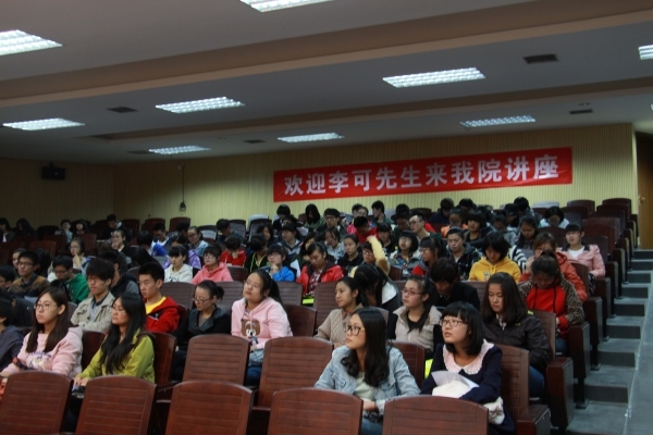 李可博士结合自己的作品向在座学子分析了《闪闪红星》、《天下无贼》、世博会《历程》、《大秦帝国》等优秀影片精美的后期特效制作及专业人员精湛的技术。