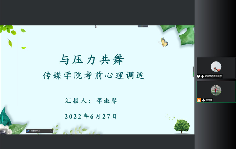 为做好员工考前心理调适,缓解心理焦虑,6月27日晚7点半,gg999策略手机白菜党委员工工作部员工心理健康指导服务中心老师邓淑琴应邀为公司员工开展题为《与压力共舞》的线上心理讲座。本次讲座由gg999策略手机白菜团委书记付枭雄主持,公司全体员工参加。