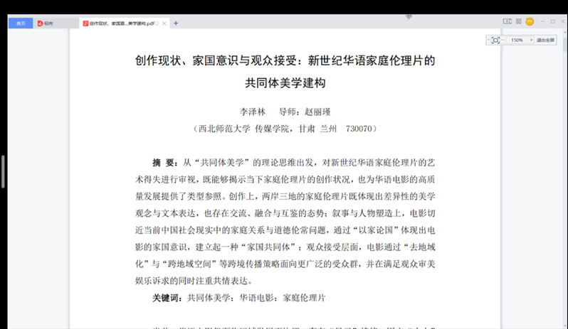 第四组李泽林汇报的论文题目为《共同体美学视域下的新世纪华语家庭伦理片》,李泽林从两岸三地的家庭伦理片的创作现状、家国意识、观众接受三个方面进行分析,认为新世纪华语家庭伦理片不仅对华语电影的国际化转型与发展树立了典范,而且对提升国家文化软实力等方面具有重要的理论与实践价值。