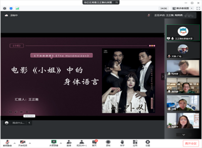 第一组王正雅同学的论文题目是《电影<小姐>中的身体语言》,王正雅从身体与权力、情欲化的女性身体、男性视角下女性身体欲望化的消减三个方面进行汇报,认为全片以小姐的身体为主线,串连起身体被规训、身体与权利的对抗,身体冲破权利的束缚这三个方面的叙事。