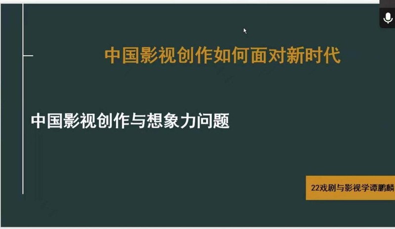 董玮同学以《新时代背景下中国影视创作的机遇与挑战》为题,从历史脉络和时代背景两个方面探讨了短视频对中国影视创作的冲击。