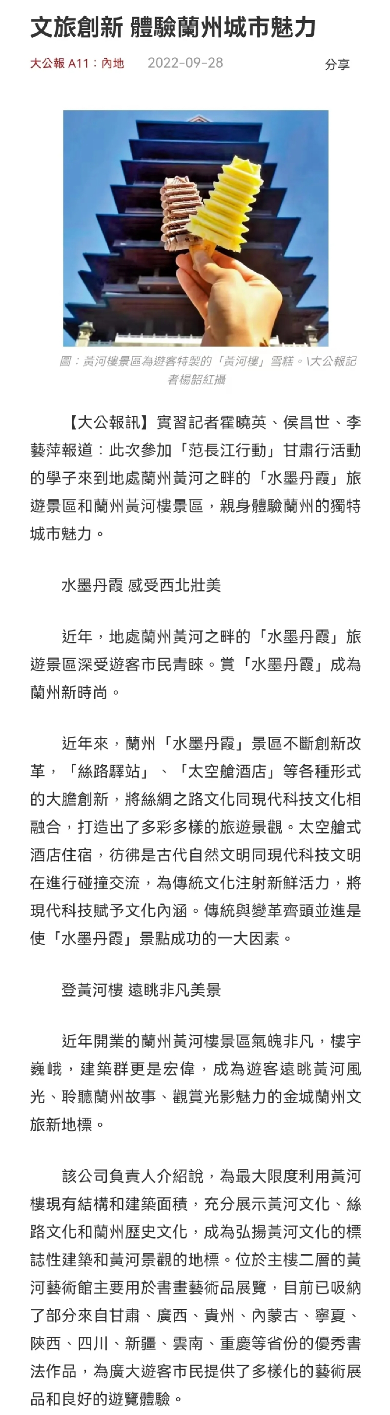 9月24日-25日,gg999策略手机白菜学子王奕丹、侯昌世、郭安琪、镡祎娜参加“2022范长江行动”陇港学子甘肃行云采访活动。