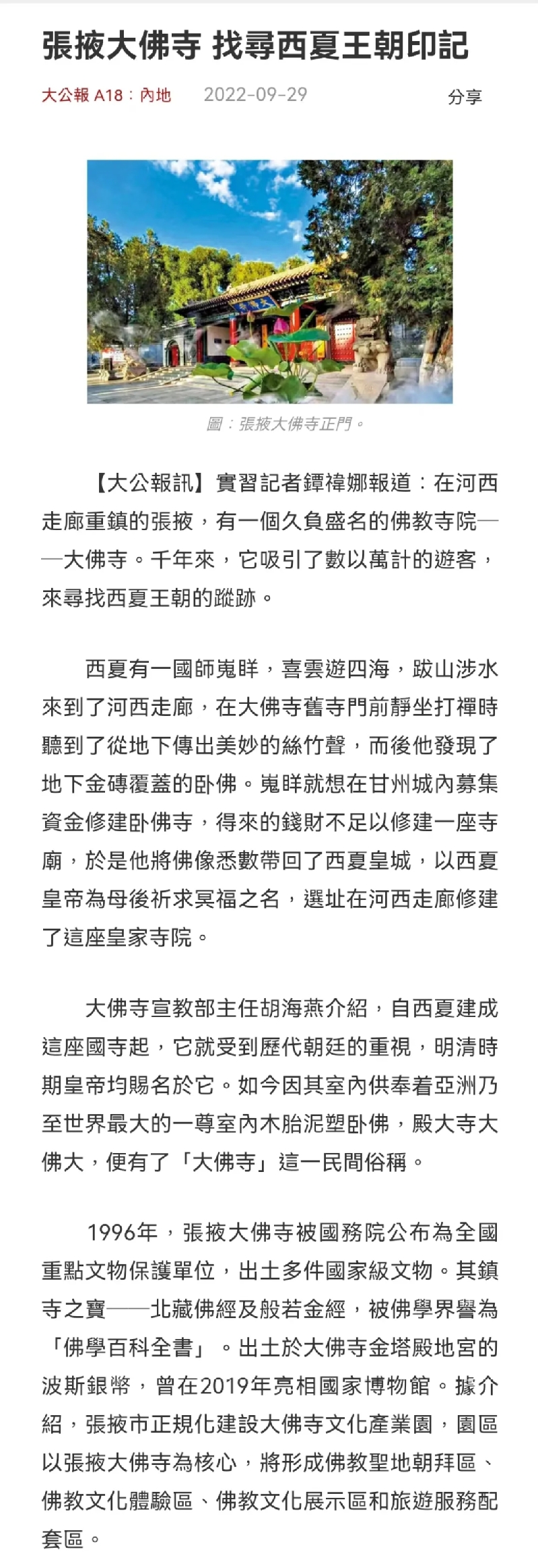 此次活动受疫情影响全程线上进行,采访团队将镜头对准了古今丝绸之路要道——河西走廊。在与被采访者的线上交流中,四人领悟中国工农红军西路军纪念馆的红色精神,感受张掖大佛寺最大卧佛的震撼,欣赏西北湿地的水韵之美,以及兰州七彩丹霞的自然之景,用文字记录下祖国建设发展的伟大成就,向外界讲述甘肃故事。